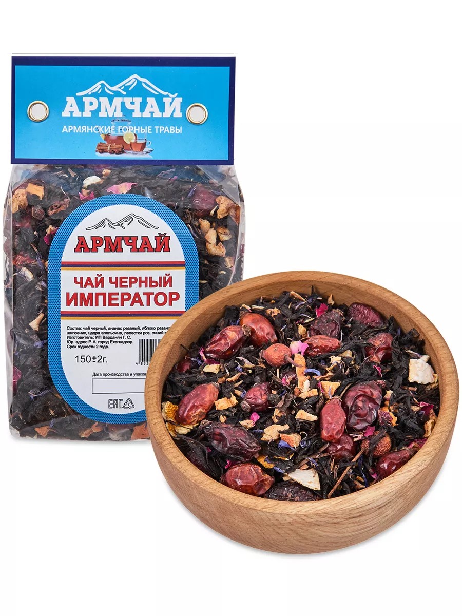 Чай травяной заварной Император 150гр - травяной сбор. Травяные сборы пользуются огромной популярностью, из экологически чистых мест Армении, ручная сборка чая. Поэтому купить сборы трав у нас – значит сделать правильный выбор! Чай рассыпной лечебный полезный для мужчин и для женщин на любой вкус. Качественный чай и 100% натуральный состав без ГМО. Чаи из трав и горячие напитки из лекарственных растений можно принимать практически всем людям любого возраста. Состав сбора имеет оптимальное измельчение для равномерного и качественного заваривания, согласно рекомендациям фитотерапевтов. Можно употреблять ежедневно, как аналог классического чая. Травяные сборы, фиточай, фитосбор, чайный напиток, травяной чай. Состав: чай черный, ананас резаный, яблоко резаное,шиповник, цедра апельсина, лепестки роз, синий василек
