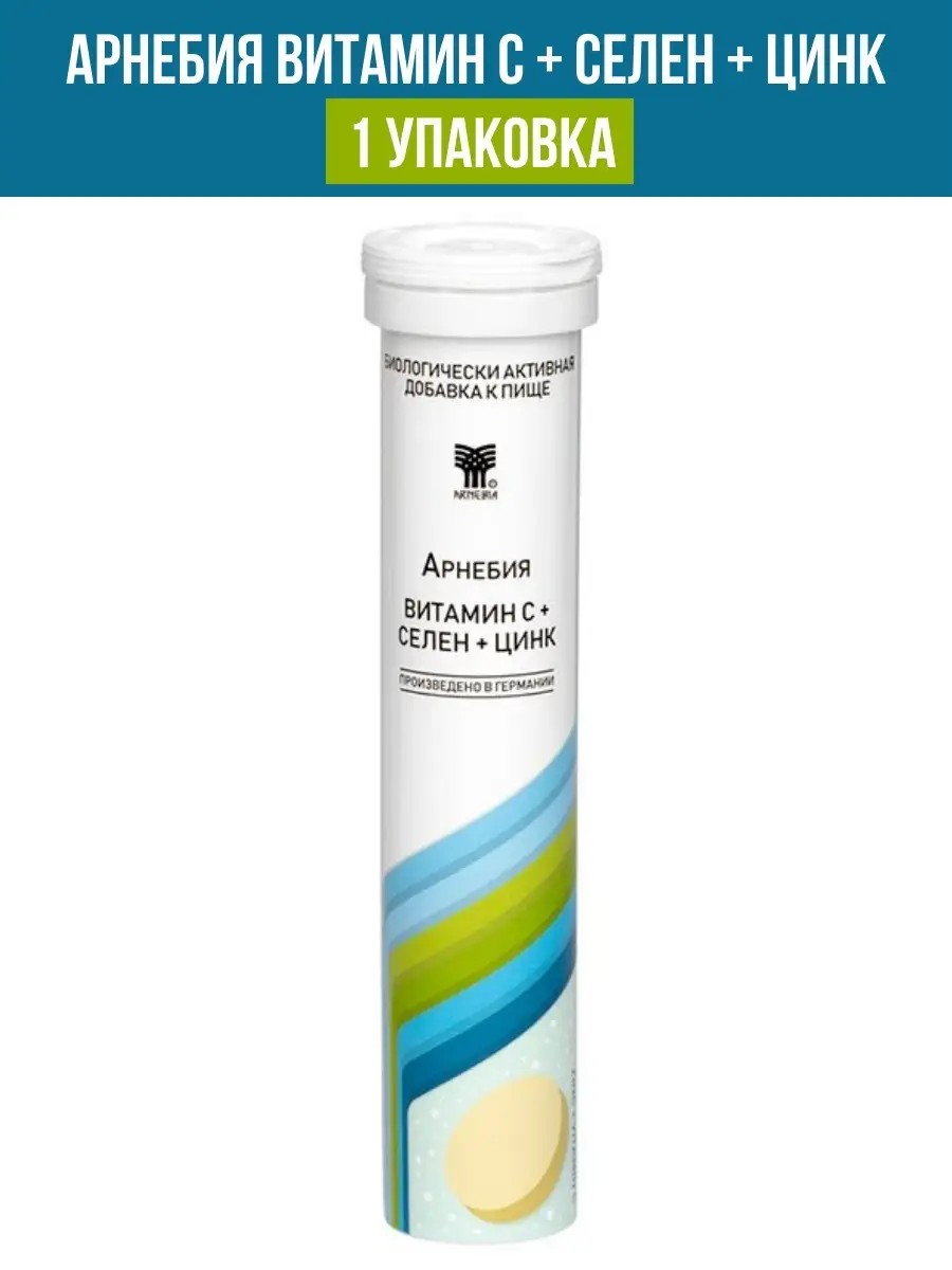 Арнебия Витамин С + Селен + Цинк. В качестве биологически активной добавки к пище - дополнительного источника цинка, селена и витамина С.