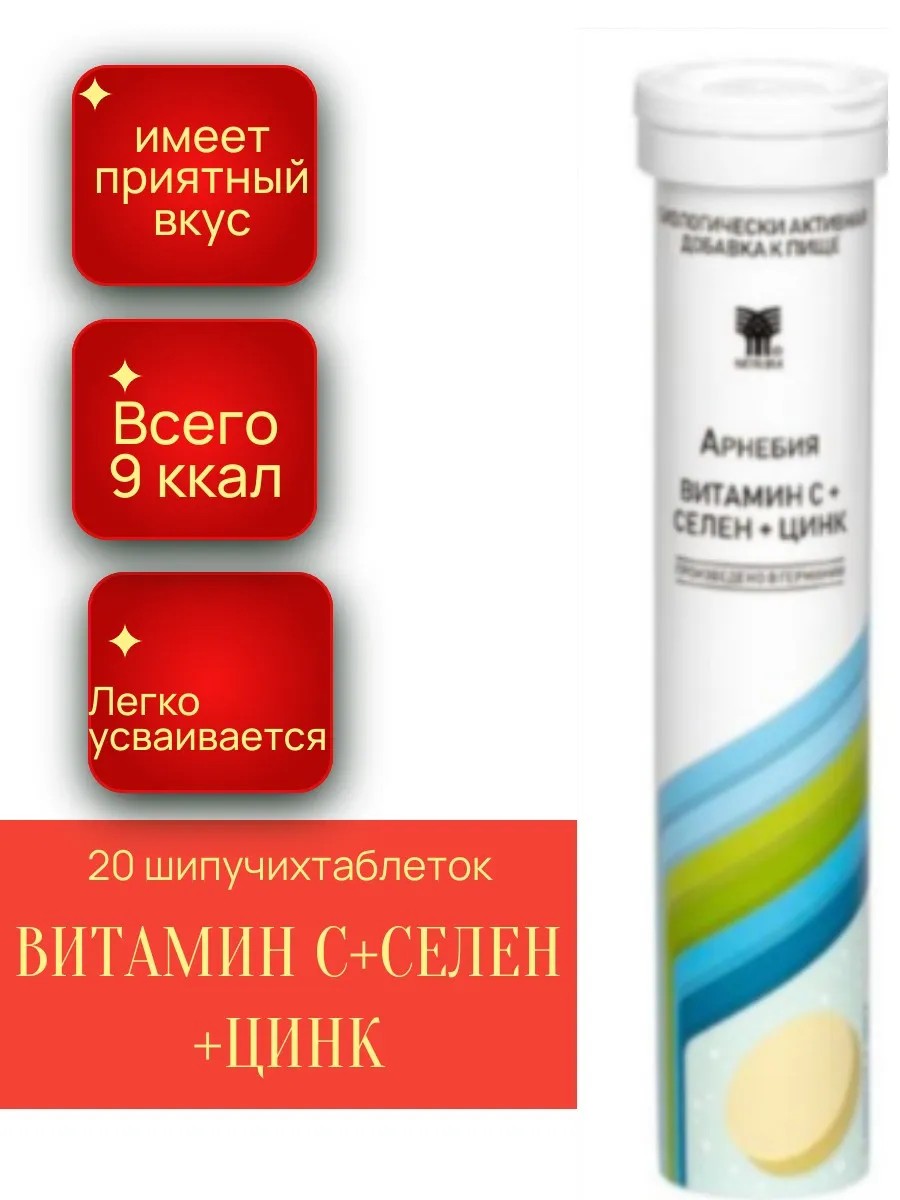 Комплектация1 шт.; Арнебия витамин с+селен+цинк n20 табл шип по 4,3г