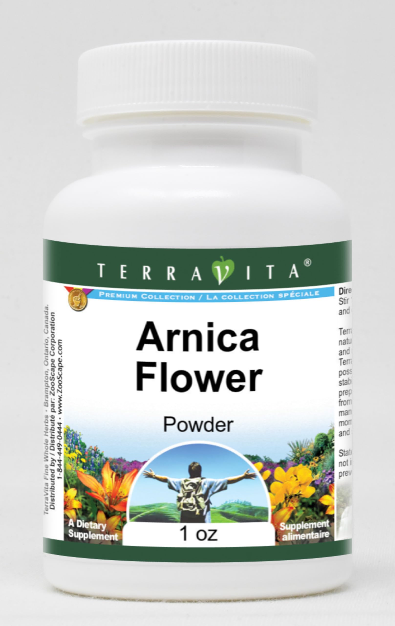 Arnica Flower Powder (1 oz, ZIN: 512592) Packaged in the United States in a GMP certified facility (Good Manufacturing Practice). No fillers. Manufacturer: TerraVita Size: 1 oz Convenient Powder format. Ingredients: Arnica Flower