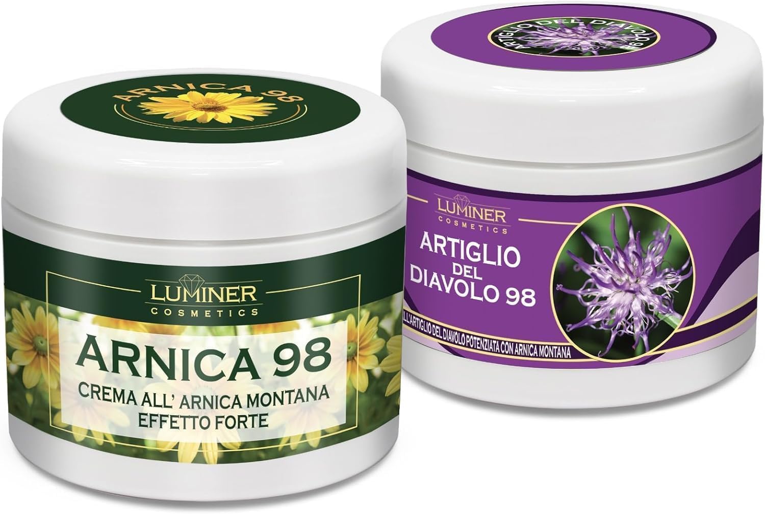 LUMINER : Luminer Cosmetics est une entreprise jeune mais déjà bien établie qui fabrique des produits de soins personnels. Gel d'arnica, griffe du diable, acide hyaluronique, crème pour le corps à base de bava d'escargot, crème pour le visage à base d'acide hyaluronique, aloe vera ne sont que quelques-uns des produits MADE IN ITALY qui sont produits et commercialisés. HAUTE CONCENTRATION : Notre crème à l'arnica pour chevaux à usage humain grâce à la forte teneur en arnica griffe du diable a une action intense et rapide. Composition naturelle conçue pour rendre le produit efficace. ACTION INTENSE ET PROFONDE : La crème forte à l'arnica, reconnue pour ses propriétés, est particulièrement adaptée avant et après le sport pour les massages musculaires et de détente. La crème à l'arnica à usage humain est idéale pour les massages musculaires grâce à sa forte concentration en arnica et en griffe du diable. FORMULE NATURELLE : Notre arnica pour chevaux à usage humain est votre allié naturel. Action à base d'arnica et de griffe du diable. Synergie parfaite d'ingrédients naturels grâce à la puissante griffe du diable avec l'aloe vera, le menthol et l'eucalyptus qui procurent une agréable sensation de fraîcheur. EXTRA STRONG : Fruit des recherches de cosmétologues experts, la formulation de notre crème à l'arnica pour chevaux usage humain la rend efficace dès la première utilisation. Une synergie parfaite d'ingrédients naturels . Grâce à ses propriétés reconnues, avec notre arnica crème gel forte vous disposez d'une solution naturelle et efficace.