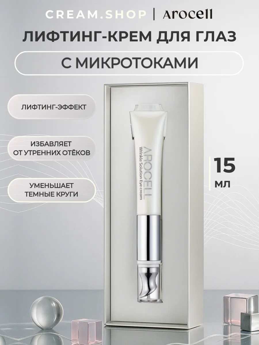 Представляем вам инновационный крем для глаз с уникальным роликом Arocell Wrinkle Solution Eye Cream, обеспечивающий эффект микротоков. Уникальный наконечник оказывает эффект гальванотерапии, приятно вибрирует, что даёт выраженный антивозрастной эффект. За счёт запатентованного ботулинического пептида крем для век оказывает эффект ботокса без инъекций - блокирует образование морщины, уменьшает глубину тонкий линий, тормозит старение кожи, дарит вашей коже упругость, эластичность и сияние. Крем для области вокруг глаз помогает от таких несовершенств кожи, как синяки, отеки по утрам, от темных кругов на фоне недосыпа. Средство содержит 5 видов церамидов, которые укрепляют защитный барьер кожи и защищают от обезвоживания. Корейская косметика известна своей эффективностью, и наш крем не исключение. Он обеспечивает лифтинг-эффект, уменьшает появление гусиных лапок, осветляет пигментацию. Насыщенная формула делает крем идеальным для сухой кожи, омолаживая и питая ее. Этот крем - прекрасный подарок для любой женщины, особенно на Новый Год. Позвольте вашей коже насладиться уходом высочайшего качества в холодную зиму. Дневной и ночной уход за зрелой кожей станет приятным ритуалом благодаря нашему крему для глаз. Выберите уходовую косметику, которая действительно работает - выберите наш крем для глаз с роликом. Пусть ваш взгляд всегда оставаться ярким и привлекательным!