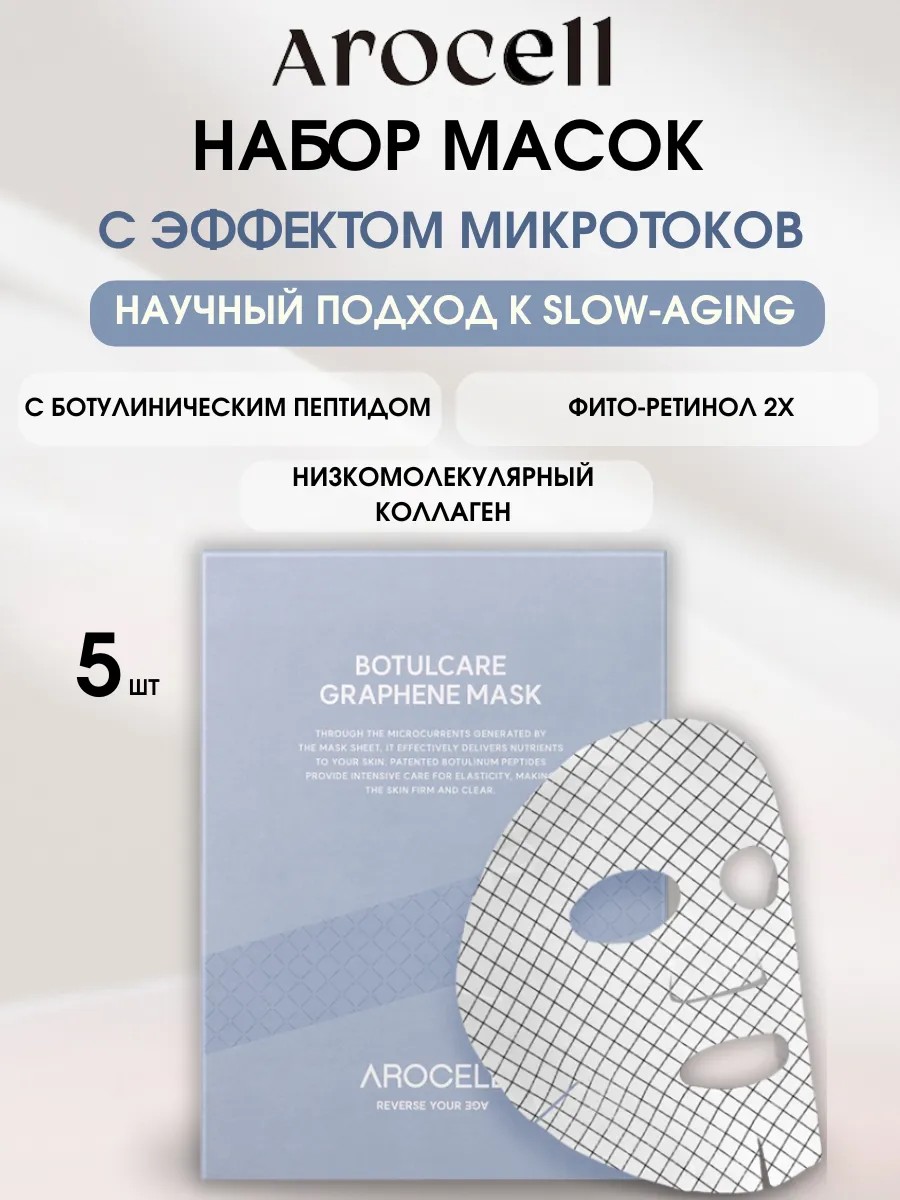 Приглашаем вас познакомиться с нашим набором из 5 уникальных тканевых масок для лица Arocell Botulcare Graphene Mask. Инновационные маски для лица из Кореи станут вашим незаменимым помощником в антивозрастном уходе за кожей! Эти увлажняющие маски обладают эффектом ботокса - заполняют глубину морщин и останавливают их дальнейшее образование. Благодаря содержанию пептидов, растительного ретинола из экстракта водорослей, коллагена и 10 видов гиалуроновой кислоты, эти маски обеспечат вашей коже упругость, эластичность и здоровое сияние. Такой уход особенно актуален для женщин 45+ и 60+. Маски обеспечивают лифтинг эффект, сужают поры и укрепляют защитный барьер кожи. Произведенные в Корее, они обеспечат профессиональный уход за кожей, как после спа процедуры. Идеально подойдут зрелой коже, а также сухой коже с признаками обезвоженности. Наслаждайтесь восстановлением и уходом как днем, так и ночью благодаря этому женскому продукту, который подарит вашей коже свежесть и молодость. Сделайте себе или вашей маме подарок на Новый Год или зиму - эти омолаживающие тканевые маски для лица станут идеальным выбором для ухода за зрелой кожей. Ощутите все преимущества корейской косметики без уколов ботокса с этими уникальными масками!