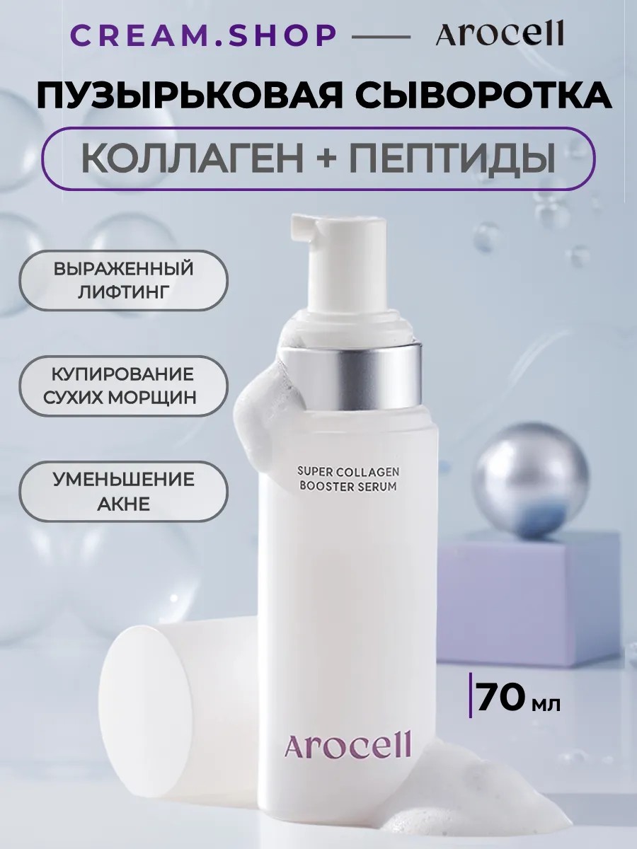 Представляем вам уникальную пузырьковую сыворотку для лица Super Power Booster Serum от Arocell. Инновационный продукт из мира корейской косметики омолаживает и интенсивно увлажняет кожу, но и впитывается в 11 раз быстрее благодаря своей пузырьковой текстуре. Эта антивозрастная сыворотка обещает эффект ботокса благодаря содержанию 10 видов пептидов, которые помогут бороться с морщинами и вернут вашей коже упругость и эластичность. С гиалуроновой кислотой, низкомолекулярным коллагеном и экстрактом женьшеня, ваша кожа будет увлажнена, упруга и наполнена здоровьем и сиянием. Сыворотка идеально подходит для ухода за зрелой кожей 45+ и 60+, помогает восстановить контуры лица, обеспечивает лифтинг-эффект и подарит вашей коже молодость и ухоженный вид. Сыворотка также отлично подходит как дневной и ночной уход. Это идеальный подарок для вашей мамы или любимой женщины. Позвольте себе роскошный уход за лицом с этой уходовой косметикой из Кореи, которая обещает эффект ботокса без уколов. Будьте уверены, что ваша кожа будет выглядеть прекрасно, даже при проблемах с акне. Можно использовать при атопии и таких особенностях кожи как экзема или дерматит. Подходит для ухода за кожей мужчин и женщин.
