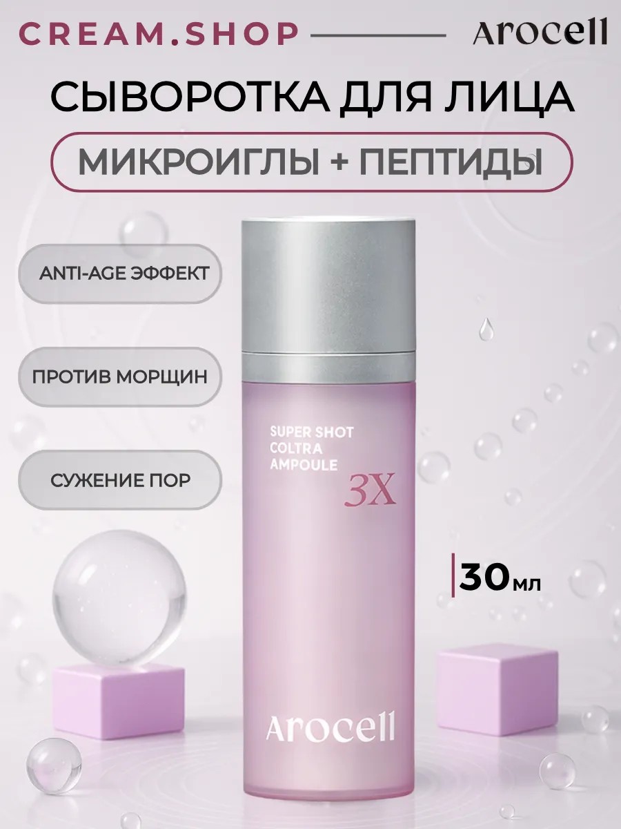 Представляем вам невероятно инновационный сыворотку для лица с микроиглами Super Shot Coltra Amploue 3X от Arocell. Увлажняющая антивозрастная сыворотка содержит самые мощные активные компоненты для ухода за кожей! В ней вы найдёте рабочую концентрацию спикул - 300 игл на грамм, а также комплекс из 10 пептидов и 8 видов коллагена, которые обеспечат вашей коже максимальное увлажнение, борьбу с морщинами, упругость и эластичность. Спикула в составе крема запускает восстановление кожи на клеточном уровне, обеспечивая омолаживающий эффект. Дополнительно, крем содержит 10 видов пептидов, муцин улитки, которые препятствуют возрастным изменениям, сужают поры, защищают от обезвоживания. Корейская сыворотка идеально подходит для ухода за зрелой кожей 45+, 50+ и 60+, помогает восстановить контуры лица, обеспечивает лифтинг-эффект и делает кожу ухоженной и сияющей. С его питательной формулой, крем подарит вашей сухой коже живительное увлажнение, омолаживание и уход, необходимый для возрастной кожи. Это прекрасный подарок для вашей мамы или любимой женщины на Новый год! Продукт подходит как дневной и ночной уход, особенно эффективен в зимнее время. Позвольте себе роскошный уход за лицом с этим уникальным средство из Кореи.