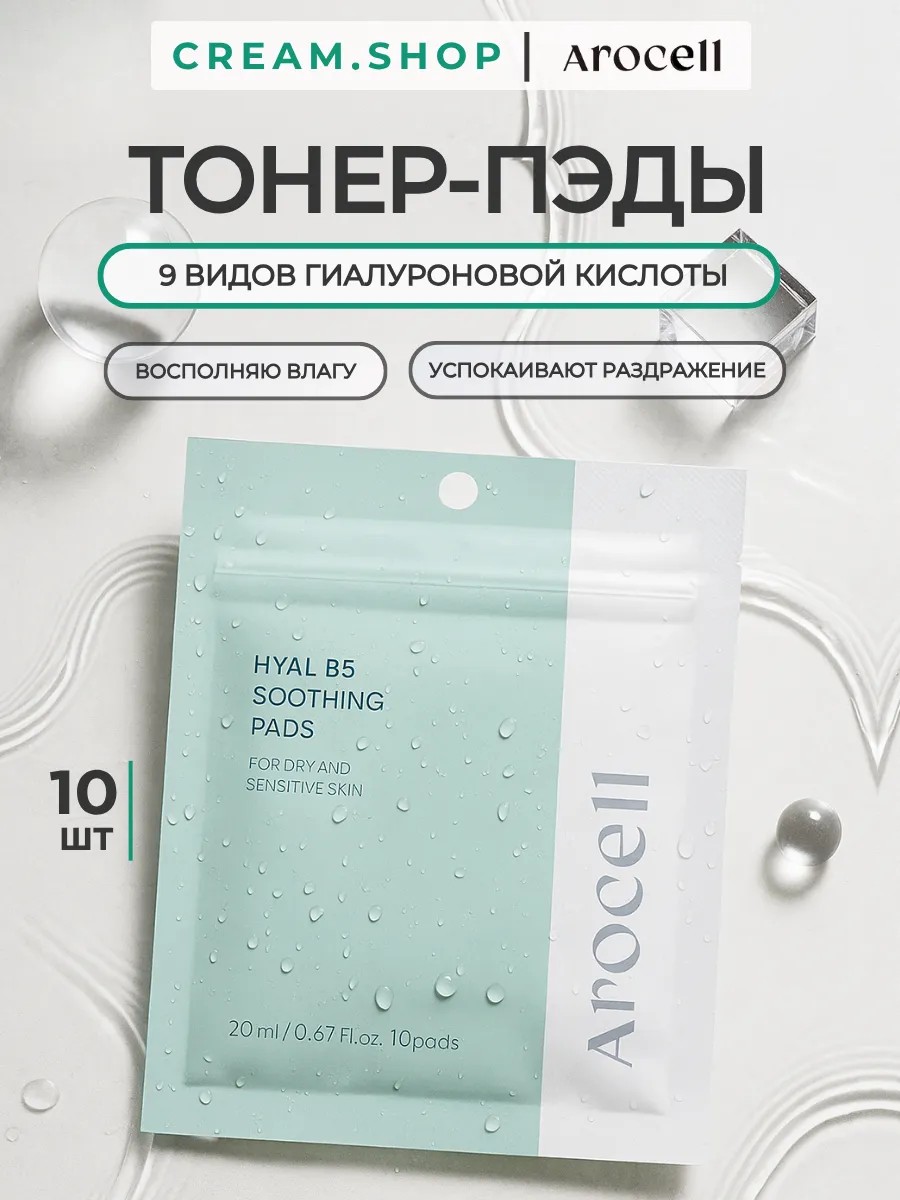 AROCELL Тонер пэды для лица 10 шт охлаждающие, успокаивающие