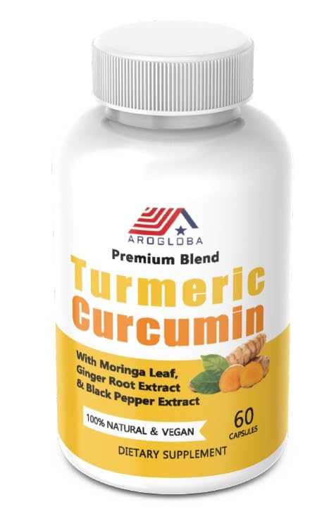 AROGLOBA Premium Turmeric Curcumin 60 Capsules Vegan Supplement with Moringa Leaf Ginger Root & Black Pepper Extract