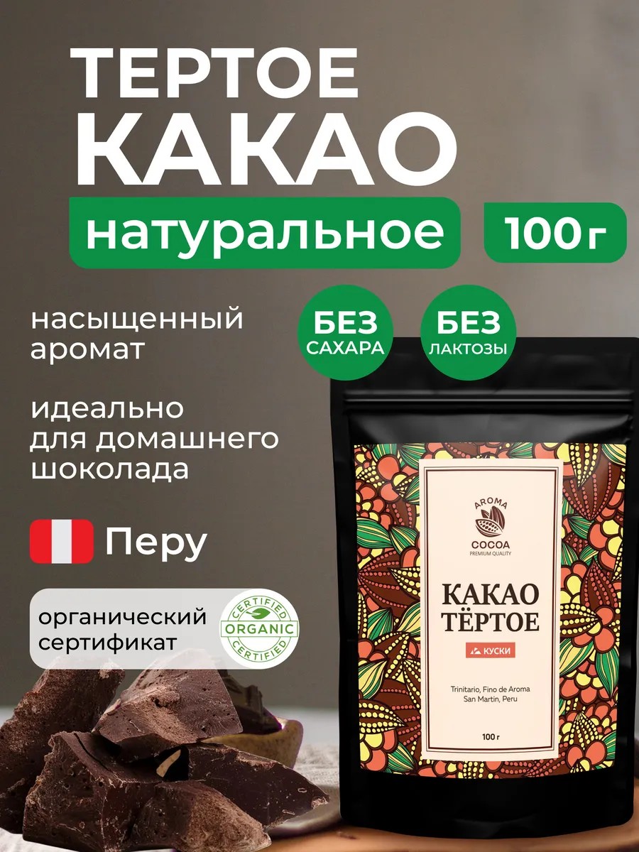 Aroma Cocoa Какао тертое натуральное в кусках Перу, 100 г