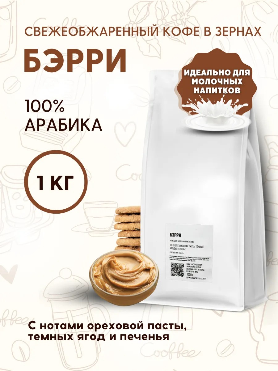Natural freshly roasted BERRY whole bean coffee. Coffee with notes of nut butter, dark berries, and biscuits. A dark-roasted blend of 100% Arabica beans from Brazil and Ethiopia in equal proportions. The roasting profile is selected so that espresso made from this coffee forms the perfect base for cappuccino, lattes, and other milky coffee drinks. The result is a full-bodied and sweet coffee with virtually no acidity. This coffee is roasted for espresso. Recommended for professional and automatic coffee machines. Ground coffee reveals its flavor perfectly in espresso machines, automatic coffee machines, Turkish coffee pots, moka pots, and French presses. Whole bean coffee from a legendary manufacturer is 100% original. Each pack has an individual QR code that can be used to verify the product's authenticity. Tasty means "delicious" when it comes to coffee! A product for connoisseurs of specialty coffee. Make coffee using your favorite recipes! Start your morning with a cup of good, aromatic coffee! This coffee makes a great gift for holidays and anniversaries. It's always roasted to perfection! The packaging features a degassing valve to preserve the flavor and aroma of the coffee, and the zip-lock design allows for convenient storage and use. The 1 kg package is perfect for preparing coffee for a large group or for long-term use. Produced by Tasty Coffee LLC for D.A. Barinov, a private entrepreneur, this coffee guarantees the quality and freshness of the product. It's an excellent choice for gourmets, coffee lovers, and anyone who wants to start their morning with a cup of aromatic coffee. This coffee makes a great gift for gourmets and coffee lovers. Start your morning with a cup of aromatic coffee from South America and Africa and enjoy its unique taste and aroma!
