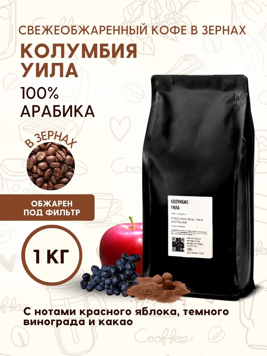 Natural freshly roasted COLOMBIA HUILÁ whole bean coffee – a 100% Arabica variety with notes of red apple, dark grapes, and cocoa. Columbia Huila is ideal for those who prefer a bolder coffee flavor. Huila is a traditional coffee-growing department in Colombia, located in the south of the country. The numerous mountain slopes, high altitude, and soil rich in sedimentary and volcanic rocks positively influence the coffee's flavor, giving it such a vibrant and distinctive character. Thanks to its filter roasting, this coffee reveals itself beautifully in a variety of brewing methods, including Turkish coffee, French press, cup, pour-over, Aeropress, and drip coffee maker. It is ideal for preparing a variety of coffee drinks, including cappuccino and latte. This coffee bean from a legendary producer is 100% authentic. Each pack has an individual QR code for verifying the product's authenticity. Tasty means "delicious" when it comes to coffee! A product for specialty coffee connoisseurs. Prepare coffee using your favorite recipes! Start your morning with a cup of good, aromatic coffee! This coffee makes a great gift for holidays and anniversaries. Always perfectly roasted! Packaging with a degassing valve preserves the flavor and aroma of the coffee, and the zip-lock allows for convenient storage and use. The 1 kg package is perfect for preparing coffee for a large group or for long-term use. The coffee is produced by Tasty Coffee LLC by order of D.A. Barinov, an individual entrepreneur, which guarantees the quality and freshness of the product. An excellent choice for gourmets, coffee lovers, and those who want to start their morning with a cup of aromatic drink. This coffee will make a great gift for gourmets and coffee lovers. Start your morning with a cup of aromatic coffee from South America and enjoy its unique taste and aroma!