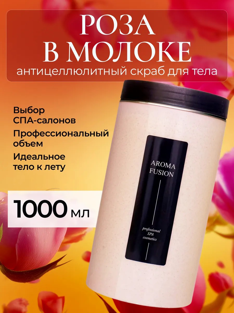 AROMA FUSION Скраб для тела антицеллюлитный соляной Роза с в молоке 1кг