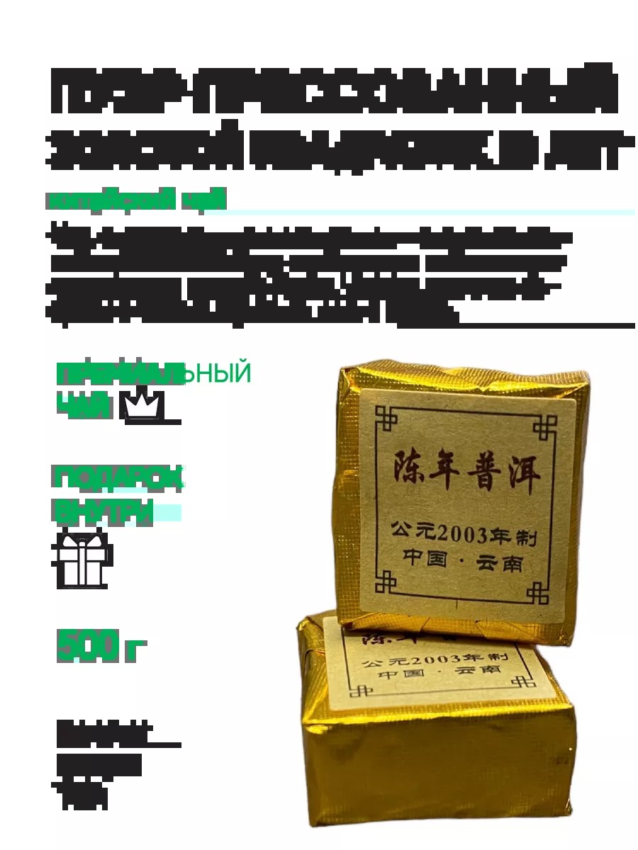 Чай спрессованный в квадратики это качественный юньнаньский Пуэр шу. Выращен чай в исторической части южного Китая. Чайные листочки собраны с чайных деревьев, а не с кустов.