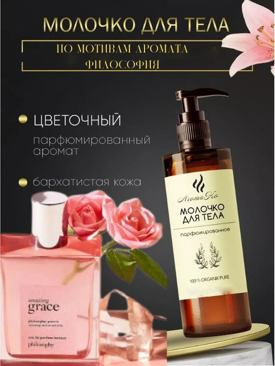 Молочко для тела «Философи» создано для уверенных в себе, современных, активных женщин. Молочко с ароматом духов Amazing Grace подарит вашему телу интенсивное увлажнение и питание. Подарите уход и заботу на день рождение, Новый Год или просто для себя. Если вам понравилось молочко для тела и аромат, то предлагаем ознакомится с нашей коллекцией, где есть шампуни для волос женские, мужские, гели для душа и скрабы для тела с AROMAKO!