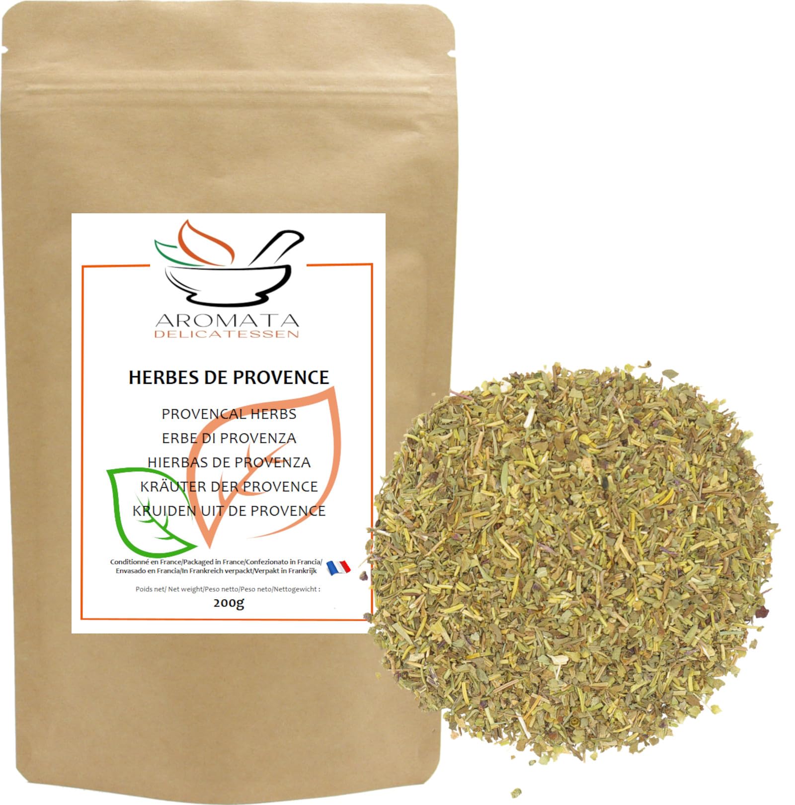 Herbes de Provence, a blend of various whole or crushed aromatic herbs, 100 natural, with no additives or preservatives. Net weight: 200g. Ingredients: Rosemary, basil, thyme, marjoram, savory. Serving suggestion: Provençal tomatoes, pizzas, ratatouille! Essential spices of Provençal cuisine! Sprinkle on your beef roasts before cooking they will be all the better for it! The subtle aromas of thyme, rosemary, oregano, and savory blend harmoniously to create a unique flavor profile. This versatile blend is ideal for seasoning meats, fish, vegetables, and stews. A quintessential symbol of Mediterranean cuisine, our Herbes de Provence blend transports you directly to the heart of the hills of Southern France. There isn't just one recipe for this blend each producer has their own, which is a closely guarded secret. Let yourself be transported by the captivating flavors of Provence with Aromata Herbs de Provence. Add a Mediterranean touch to your recipes and delight your guests with deliciously fragrant dishes. Our Herbs de Provence are packaged in France. Aromata carefully selects its spices with the utmost attention to offer you exceptional quality. The resealable zip-lock bag protects your spices from moisture, preserving their full flavor. INGREDIENTS Herbs de Provence blend: Rosemary, basil, thyme, marjoram, savory INSTRUCTIONS FOR USE Store in its original packaging. Reseal the bag tightly after use. See moreAROMATA - Herbes de Provence - Mélange 100 naturel - 200grDESCRIPTION DU PRODUIT DESCRIPTION DU PRODUIT Herbes de Provence, mélange de diverses herbes aromatiques entières ou concassées 100 naturel,sans additifs ni conservateurs . Poids net : 200gr Composition: Romarin, basilic, thym, marjolaine, sarriette Conseil d'utilisation Tomates provençales, pizzas, ratatouilles ! Épices Incontournables de la cuisine provençale ! Saupoudrez vos rôtis de bœuf avant cuisson, il n'en sera que meilleur ! Les arômes subtils de thym, de romarin, d'origan et de sarriette se marient harmonieusement pour créer un bouquet gustatif unique. Ce mélange polyvalent idéale pour assaisonner viandes, poissons, légumes et plats mijotés. Symbole par excellence de la cuisine méditerranéenne, notre mélange d'herbes de Provence vous fait directement voyager au cœur des collines du Sud de la France. Il n'existe pas une seule et unique recette pour ce mélange, à chaque fabricant la sienne, qui est d'ailleurs bien gardée. Laissez-vous transporter par les saveurs envoûtantes de la Provence avec les Herbes de Provence Aromata. Ajoutez une touche méditerranéenne à vos recettes et émerveillez vos convives avec des plats délicieusement parfumés. Nos Herbes de Provence sont conditionnées en France . Aromata sélectionne soigneusement ses épices avec la plus grande attention afin de vous offrir une qualité exceptionnelle . Le sachet refermable par zip protège vos épices de l'humidité leur conservant ainsi toute leur faculté gustative. INGRÉDIENTS Mélange d'herbes de Provence : Romarin, basilic, thym, marjolaine, sarriette MODE D'EMPLOI A conserver dans son emballage d'origine. Bien refermer le sachet après utilisation. Voir plus