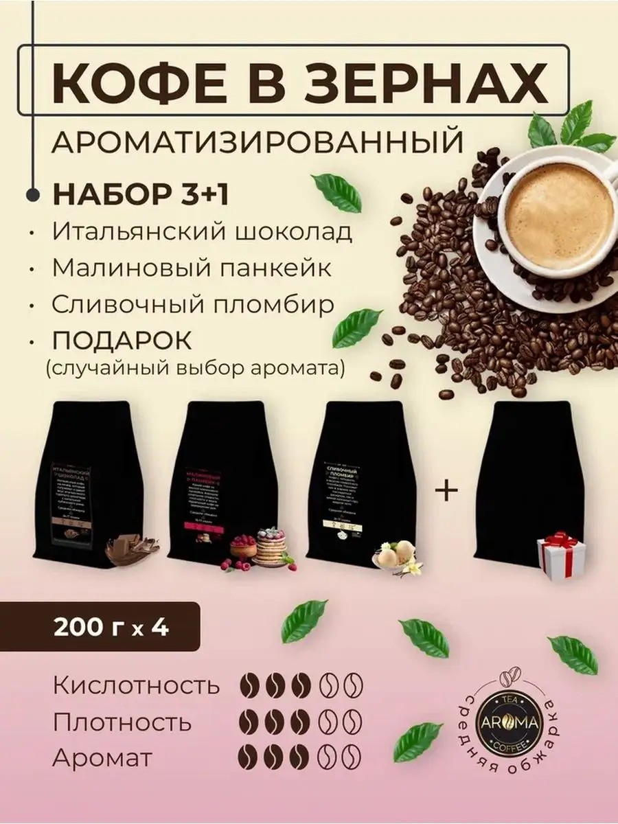 AROMAЧАЙ Набор кофе в зернах арома 4*200г