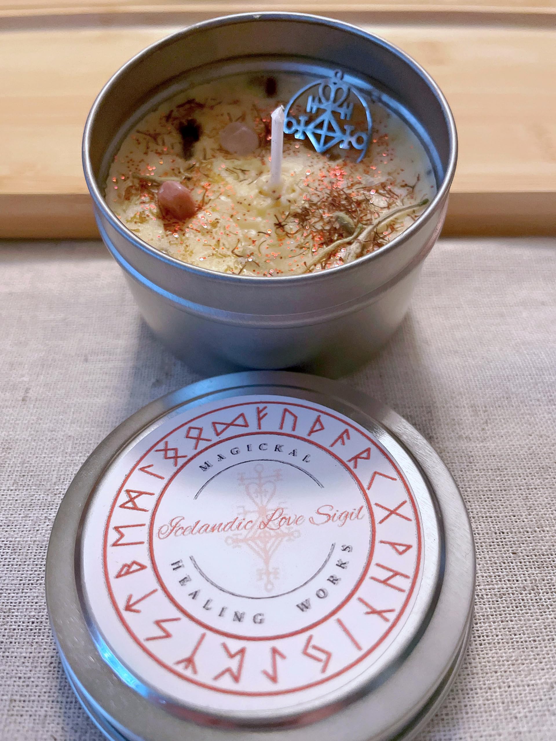Aromatherapy Soy Wax Intention Candle - Love Sigil - Rose - Gardenia - Lilly, Yellow
