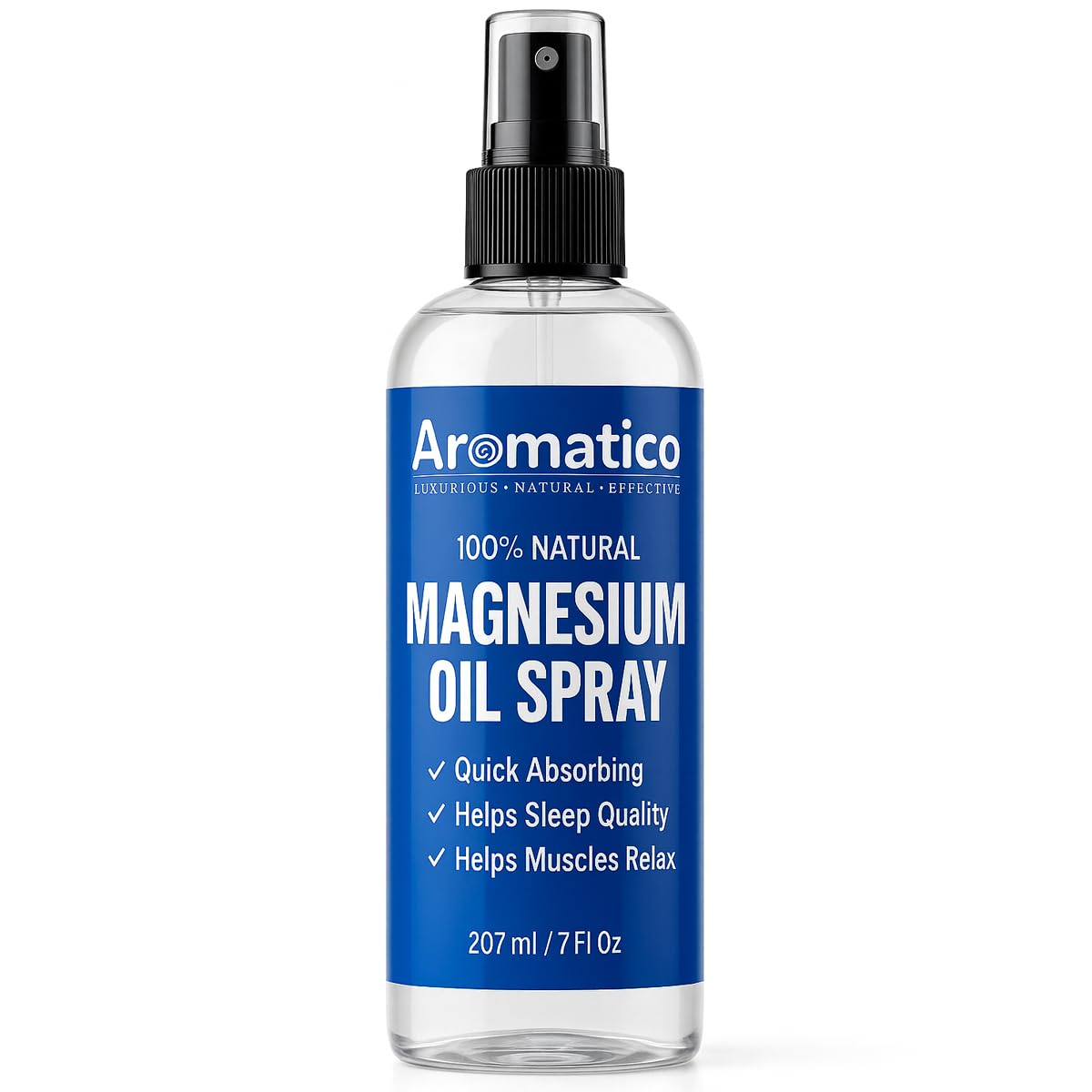 Aromatico Magnesium Oil Spray 100% Natural, Topical Magnesium Chloride Spray for Skin Use, Fast Absorbing Body Spray, Pure Mineral Magnesium Solution, 207 ml / 7 fl oz.