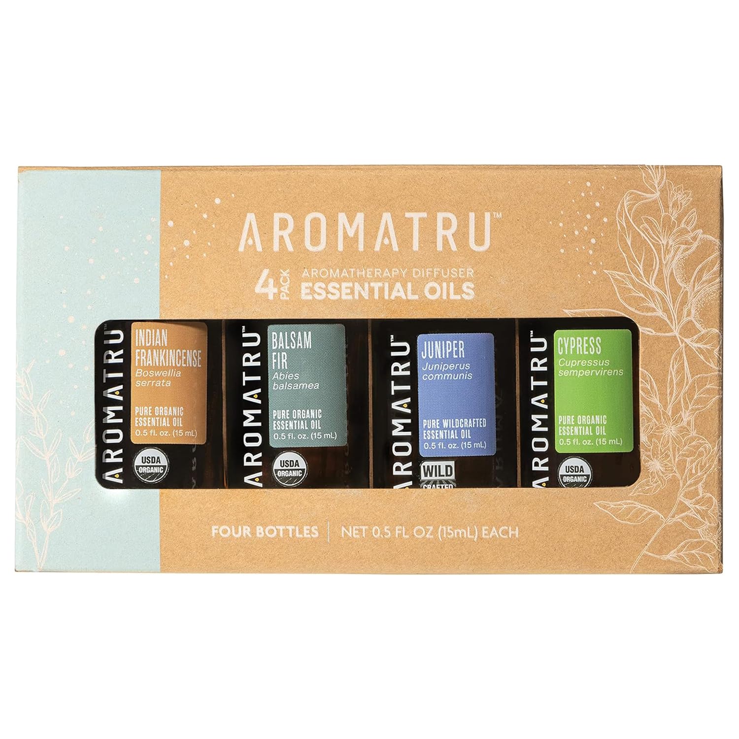 THIRD-PARTY TESTED FOR QUALITY AUTHENTICITY: Every AromaTru essential oil is ethically sourced and sustainable, then tested by an independent, ISO-certified lab to confirm identity, purity, and safety. Only oils that meet rigorous quality standards are bottled for use. PURE, PLANT-BASED INGREDIENTS – NO FILLERS: Made exclusively from raw plant parts like flowers, peels, roots, and resins—never diluted or synthetically reproduced. Free from synthetic fillers and artificial fragrances, offering only clean, authentic aroma from nature. ORGANIC WILDCRAFTED FROM TRUSTED SOURCES: Each oil is either USDA Certified Organic or responsibly wildcrafted. These oils are sourced from natural environments and carefully distilled to preserve the purity and richness of the natural plant, without artificial ingredients or enhancements. SCENTS THAT BRING TRANQUILITY AND INSPIRATION: Immerse yourself in an uplifting aromatic journey—Indian Frankincense helps quiet the mind and enriches spiritual practice Balsam Fir evokes the calming essence of a peaceful forest Juniper offers a fresh, cleansing aroma long cherished for its purifying qualities and Cypress provides a soothing, grounding note that comforts the soul. Together, they encourage calm, focus, and an elevated atmosphere in any space. ELEVATE ESSENTIAL OIL COLLECTION – 4 BOTTLES (15ML EACH): Includes Indian Frankincense, Balsam Fir, Juniper, and Cypress essential oils. This thoughtful collection is designed to inspire serenity and elevate your moments of reflection, whether used in a diffuser, custom blends, or mindful rituals. Droppers are included for easy, mess-free use.