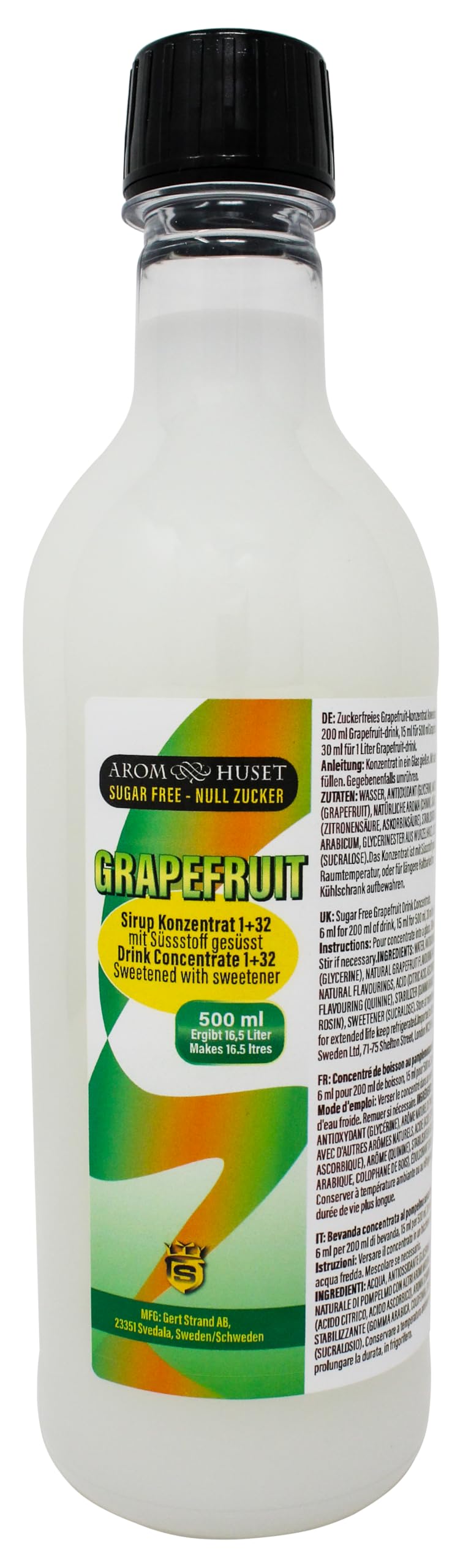 Craving grapefruit today? Grapefruit concentrate transforms mineral water into a delicious, refreshing drink. Easily create your favorite beverage at home in seconds. Simply mix grapefruit syrup with tap water to create grapefruit lemonade that will impress with its taste, aroma, and low calorie count. Kids can mix their favorite drink in seconds. Perfect for parties or barbecues. Our grapefruit concentrate helps you incorporate a calorie-conscious diet with more flavor into your daily life. Especially during the summer months, it's important to drink enough fluids. Grapefruit concentrate transforms water into a delicious, refreshing grapefruit drink in seconds. 500 ml of concentrate makes 16.5 liters of grapefruit-flavored beverage. Dosage: 6 ml makes 200 ml of grapefruit-flavored beverage. 15 ml makes 500 ml of grapefruit drink. 30 ml makes 1 liter of grapefruit juice. Benefits: Available exclusively on . Grapefruit drink anytime. Sweetened with a delicious sugar alternative. With a pleasantly sweet taste. Contains grapefruit extract. Low in calories. Low in carbohydrates. No preservatives. Mixing ratio 1:33. A refreshing thirst quencher on hot summer days. You save on plastic and protect the environment. No more lugging around makes the same amount of drink as the included 50 x 330 ml cans. No bottle deposit. No empty food containers. Made in Sweden. Direct from the manufacturer. Ingredients: Water, antioxidant (glycerin), natural flavoring (grapefruit), natural flavoring (chinine), acid (citric acid, ascorbic acid), stabilizer (rubber arabic, glycerin resin ester), sweeteners. Medium (sucralose). INSTRUCTIONS FOR USE Use 1 part concentrate and 33 parts water to prepare your drink. For example, mix 6 ml of concentrate with 194 ml of water to obtain 200 ml of drink. SAFETY WARNING Do not consume undiluted. Keep out of reach of children and store in a cool, dry place. See morePamplemousse – Concentré de 500 ml pour 16,5 l de boisson sans sucre Rapport de mélange 1:33 Contient de l'extrait de pamplemousse, d'agrumes Hautement concentréDESCRIPTION DU PRODUIT DESCRIPTION DU PRODUIT Envie de pamplemousse aujourd'hui ? Le concentré de pamplemousse transforme l'eau minérale en une boisson rafraîchissante savoureuse. Créez facilement votre boisson préférée chez vous en quelques secondes. Mélangez le sirop de pamplemousse avec de l'eau du robinet et créez de la limonade au pamplemousse qui saura convaincre en termes de goût, d'arôme et de calories. Les enfants peuvent mélanger leur boisson préférée en quelques secondes. Parfait pour les fêtes ou les barbecues. Notre concentré de pamplemousse aide à intégrer une alimentation soucieuse de calories avec plus de saveur dans votre vie quotidienne. Surtout pendant les mois d'été, il faut boire suffisamment de liquide. Le concentré de pamplemousse transforme l'eau en une délicieuse boisson rafraîchissante au pamplemousse en quelques secondes. 500 ml de concentré permettent d'obtenir 16,5 litres de boisson au goût pamplemousse. Dosage : 6 ml produisent 200 ml de boisson au pamplemousse. 15 ml produisent 500 ml de boisson au pamplemousse. 30 ml produisent 1 l de larme de pamplemousse. Avantages : Disponible exclusivement sur . Boisson au pamplemousse à tout moment. Sucré avec une délicieuse alternative au sucre Avec un goût agréablement sucré. Contient de l'extrait de pamplemousse. Faible en calories. Faible en glucides. Sans conservateurs. Rapport de mélange 1:33. Désaltérant rafraîchissant pendant les chaudes journées d'été. Vous économisez du plastique et protégez l'environnement. Plus besoin de traîner, produit la même quantité de boisson que les canettes de 50 x 330 ml incluses. Pas de consigne de bouteille. Pas d'aliments vides. Fabriqué en Suède. Vente directe du fabricant. Ingrédients : Eau, antioxydant (glycérine), arôme naturel (pamplemousse), arôme naturel (chinine), acide (acide citrique, acide ascorbique), stabilisateur (arabicum en caoutchouc, ester de glycérine en résine). ), sucreries. Moyen (sucralose). MODE D'EMPLOI Utilisez 1 dose de concentré et 33 doses d'eau pour préparer votre boisson. Par exemple, mélanger 6 ml de concentré avec 194 ml d'eau pour obtenir 200 ml de boisson. AVERTISSEMENT DE SÉCURITÉ Ne pas consommer non dilué, conserver hors de portée des enfants et conserver dans un endroit frais et sec. Voir plus