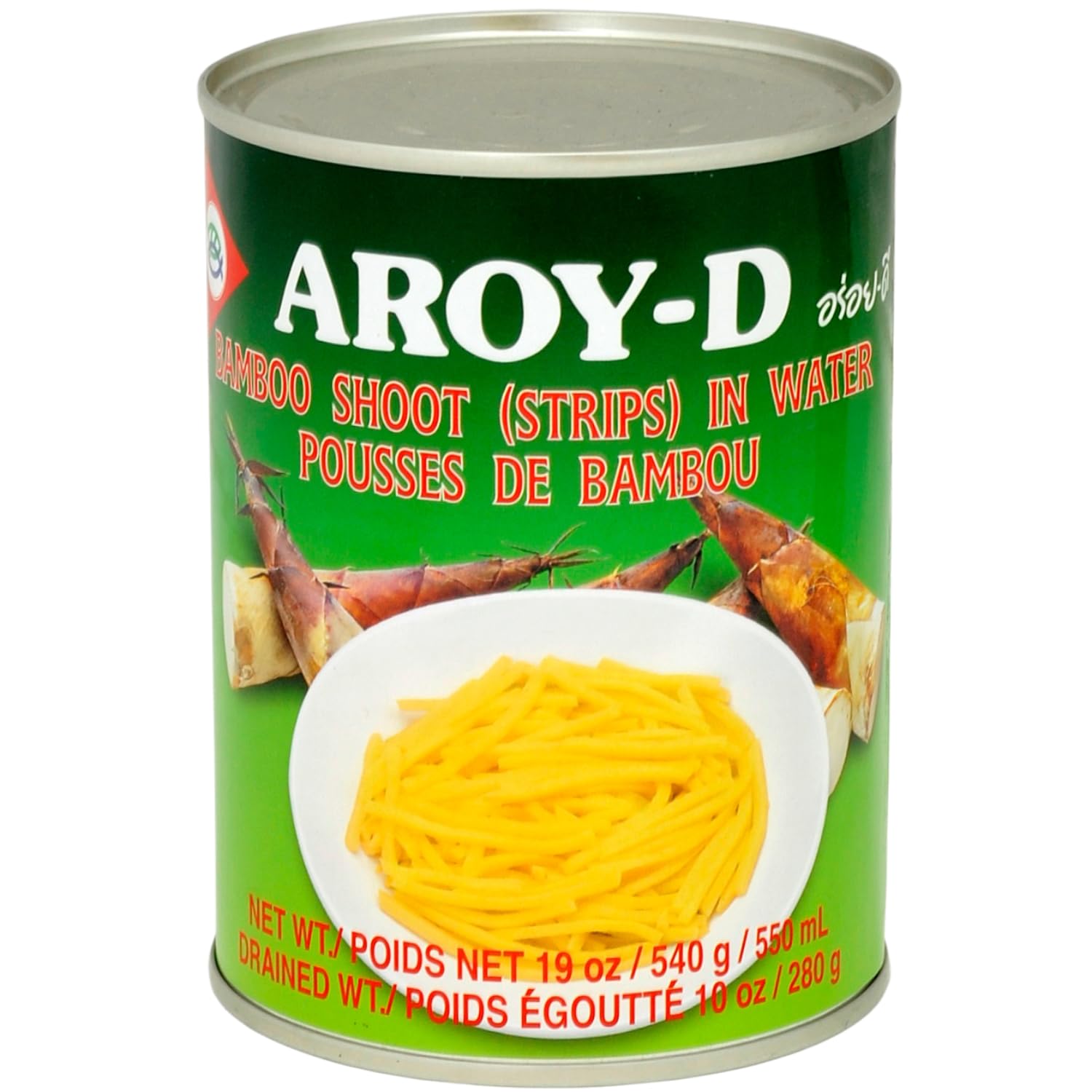 : Bamboo shoot strips with contents: 1 x 540g. Premium quality, from Thailand. Brand: aroy-d. Ingredients: BAMBOO SHOOTS 52 , WATER. Instructions for Use: No instructions required. Safety Warning: No warning. See more