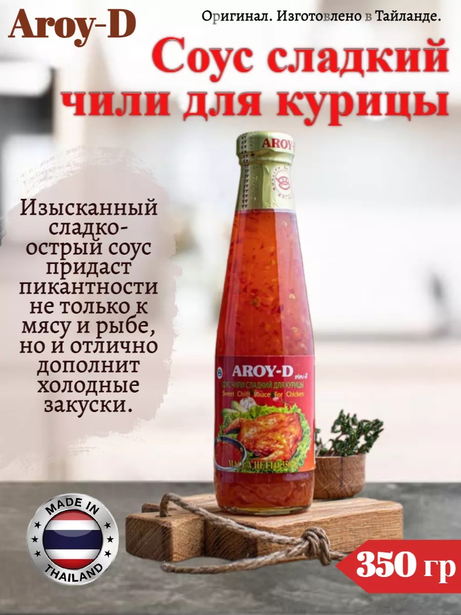 Аппетитный соус остро-сладкий чили для курицы Aroy-D | Эрой-Д идеально подойдет не только для блюд из мяса, но и для многих других продуктов. Его можно использовать и для мяса, и для блюд из риса, и для приготовления восточных супов и лапши. Изысканный сладко-острый придаст пикантности не только жареным и печеным продуктом, но и отлично дополнит холодные закуски. Издавна яркие комбинации вкусов были приняты за основу в тайской, вьетнамской, корейской, японской, китайской кухнях. Местные жители любили комбинировать приправы, получая новые удивительные соусы для дополнения многих продуктов. Так получился и остро-сладкий соус с чили, который традиционно во многих азиатских странах подают к столу в соусницах как дополнение к блюдам из жареной птицы. Соус остро-сладкий чили для курицы Aroy-D | Эрой-Д: основные преимущества Пикантный соус можно использовать не только для курицы, но и для многих других блюд. Его особенный сладко-острый привкус хорошо сочетается и с овощами, и с блюдами из риса. Он дополнит блюда, приготовленные на гриле или во фритюре. Непривычное сочетание острого и сладкого собрало немало поклонников не только в Азии, но и Европе. Его широко используют во многих блюдах европейской кухни, используя вместо кетчупа. Кстати, в Таиланде, откуда родом соус, его часто используют и в качестве маринада. Для тайцев кисло-острый соус – привычный ингредиент, который дополняет блюда витаминами, а также обеззараживает их, так как в составе два мощнейших антисептика – перец чили и чеснок. Можно отметить, что соус – натуральная еда, которая, кроме улучшения вкуса, приносит пользу всему организму. Так, известно, что чеснок является мощным антиоксидантом, противовоспалительным и бактерицидным средством, которое препятствует преждевременному старению и укрепляет нервную и сердечно-сосудистую системы. Перец чили, помимо яркого аромата и острого вкуса, дарит способность организму ускорять обменные процессы. Вот почему он часто применяется при диетах. Кроме того, острый перец: благоприятно воздействует на сердечную мышцу; препятствует образованию тромбов; предотвращает развитие инфаркта и инсульта; уменьшает головные боли; усиливает защитные функции организма; повышает уровень тестостерона у мужчин. Как использовать? Соус прекрасно поддается термической обработке, благодаря которой начинает еще больше благоухать. Именно поэтому его можно добавлять не только в процессе обжарки или тушения разнообразных блюд, но и в самом начале, чтобы основной продукт им полностью пропитался. Можно подавать в холодном виде как отдельное блюдо к кушаньям из птицы, мяса, рыбы, а также роллам, спринг-роллам, лапше. Также можно использовать в качестве оригинальной заправки для мясных салатов.