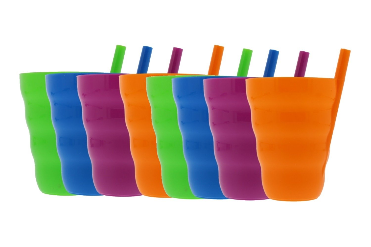 Arrow Sip-A-Cup with Built In Straw For Kids Includes Purple Blue Green Orange (8 Pack)