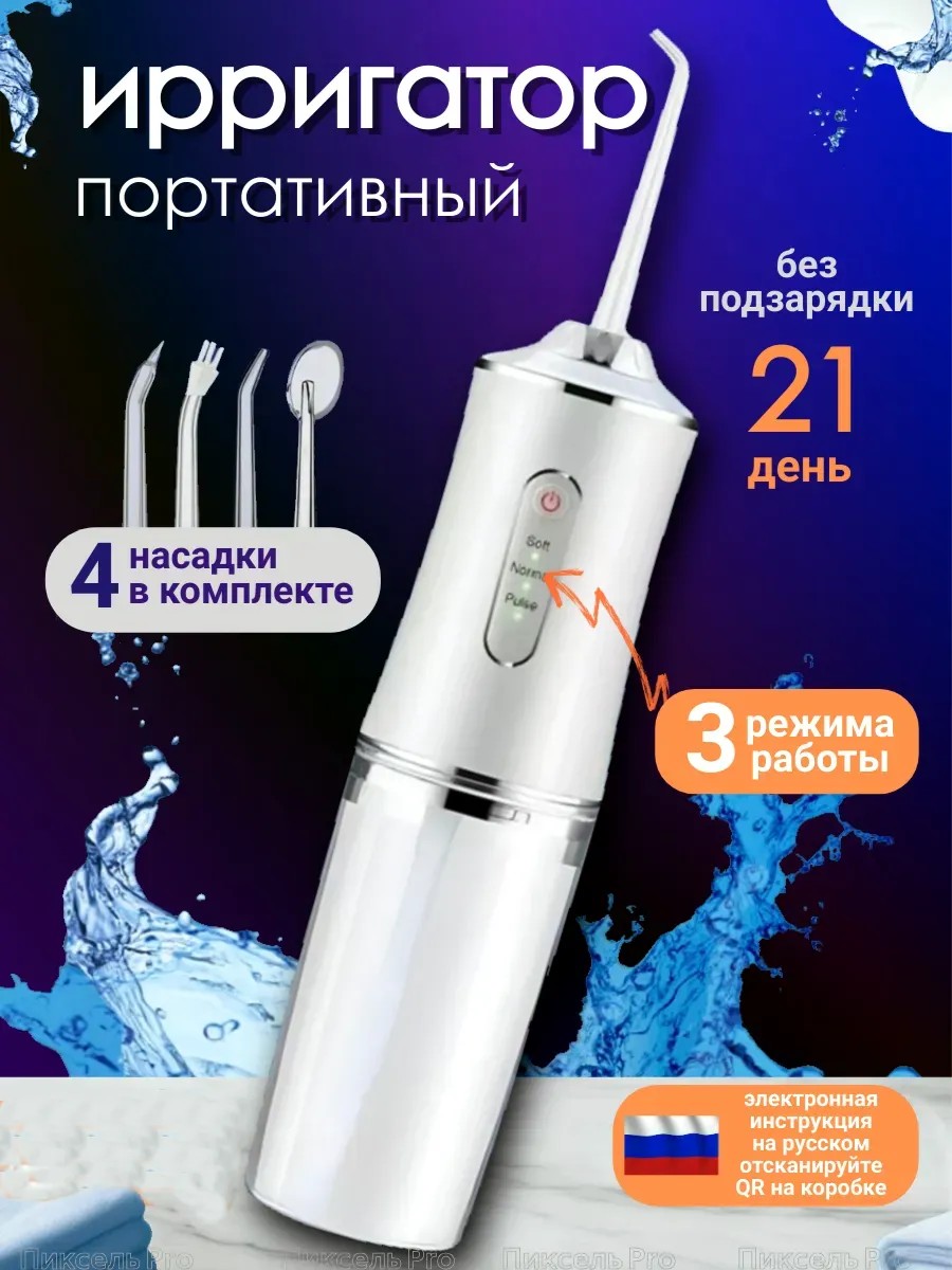 Компактный и удобный ирригатор предназначен для тщательной гигиены полости рта. Это портативное устройство поможет обеспечить качественное очищение зубов и десен, делая уход за полостью рта более эффективным. Он оснащен тремя режимами работы – Soft, Normal и Pulse, что позволяет выбрать наиболее комфортный вариант для индивидуального подхода. В комплект входят 4 сменные насадки, каждая из которых разработана для выполнения различных задач, что делает использование прибора универсальным. Прозрачный резервуар позволяет контролировать уровень воды, обеспечивая удобство в эксплуатации. Этот ирригатор идеально подходит как для домашнего использования, так и для поездок, благодаря своей компактности и легкости. Он станет надежным помощником в ежедневной гигиене и поможет поддерживать здоровье зубов и десен, обеспечивая чистоту и свежесть дыхания в любой ситуации.