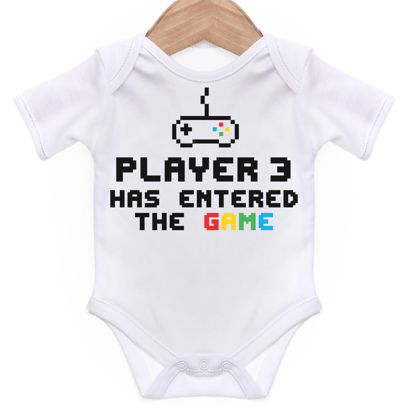 ART HUSTLE Player 3 Has Entered The Game Short Sleeve Bodysuit/Baby Grow For Baby Boy Or Girl 3-6 Months White