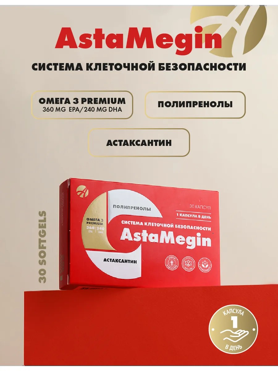 «АстаМегин (AstaMegin)» - это специализированный биологически активный липофильный комплекс, предназначенный для защиты и восстановления клеточных структур, для повышения регенеративного потенциала клеток.