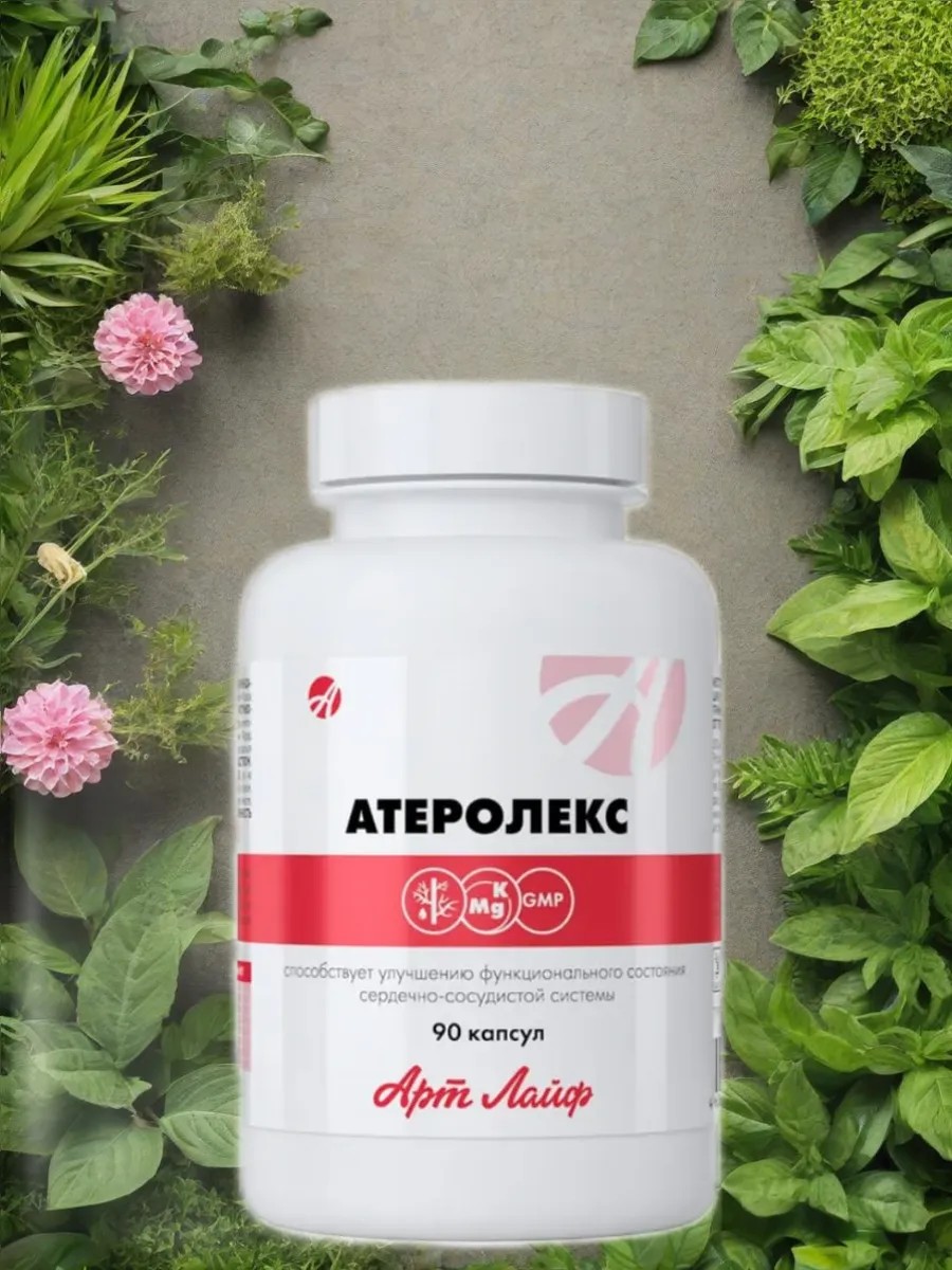 Aterolex improves the functional state of the cardiovascular system, reduces the severity of cholesterol metabolism disorders, blood viscosity, and improves microcirculation.