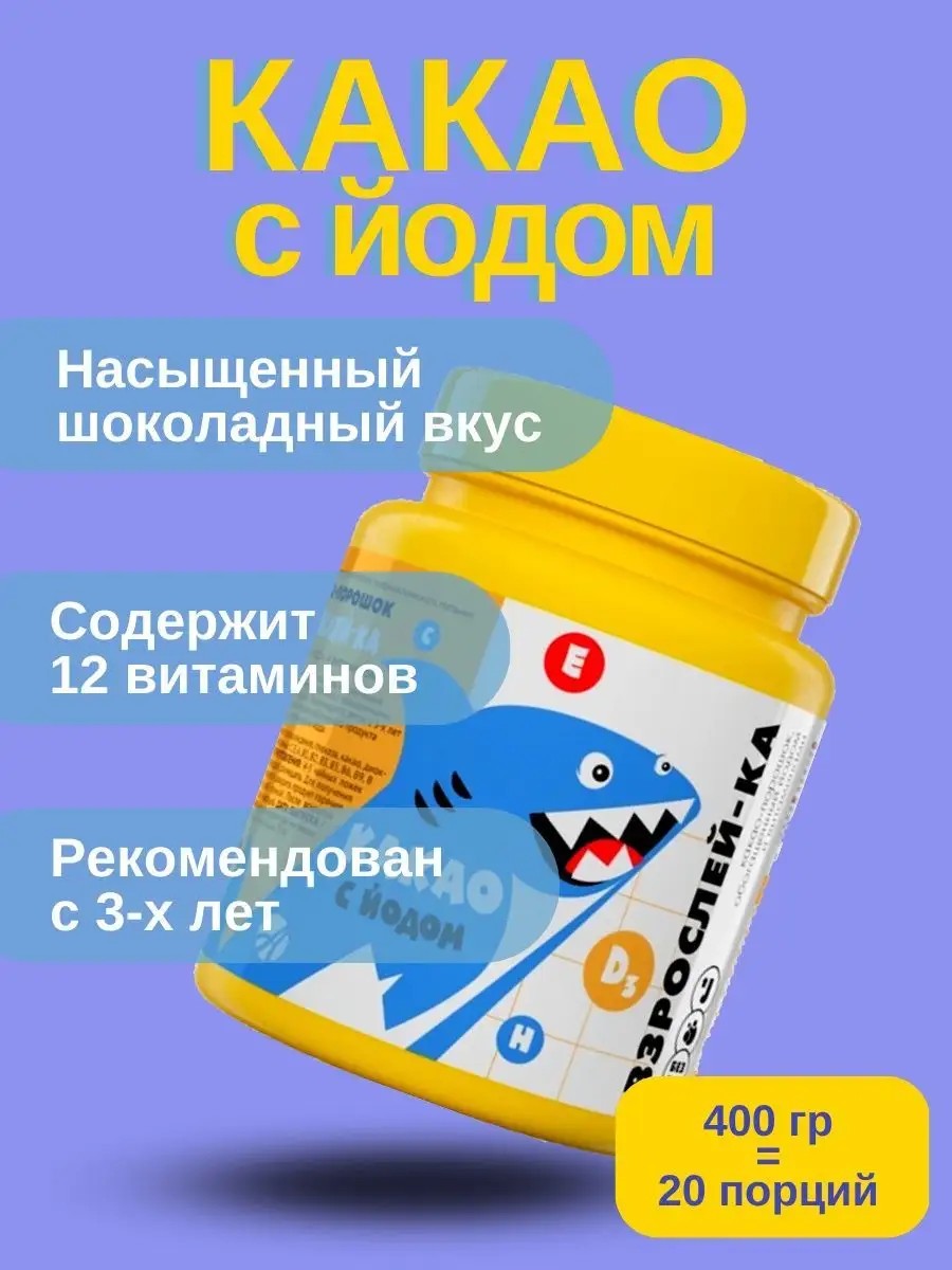 Какао порошок "Взрослейка" с йодом - полезный, натуральный какао напиток с насыщенным шоколадным вкусом, дополнительный источник основных витаминов и йода. Какао порошок способствует укреплению иммунитета, правильному обмену веществ, поможет легко справиться с повышенными физическими и умственными нагрузками. Рекомендован детям с 3 лет и в регионах с низким содержанием йода .