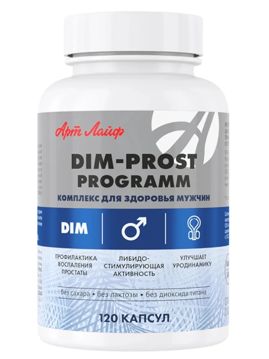 DIM-prost programm (ДИМ-прост программ) – натуральный комплекс для мужчин с дииндолилметаном – инновационное природное соединение для улучшения метаболизма гормонов и активации процессов детоксикации. Обладает высоким уровнем биодоступности благодаря биоперину. Улучшает синтез мужских половых гормонов, оказывает функционально благоприятное действие на предстательную железу.