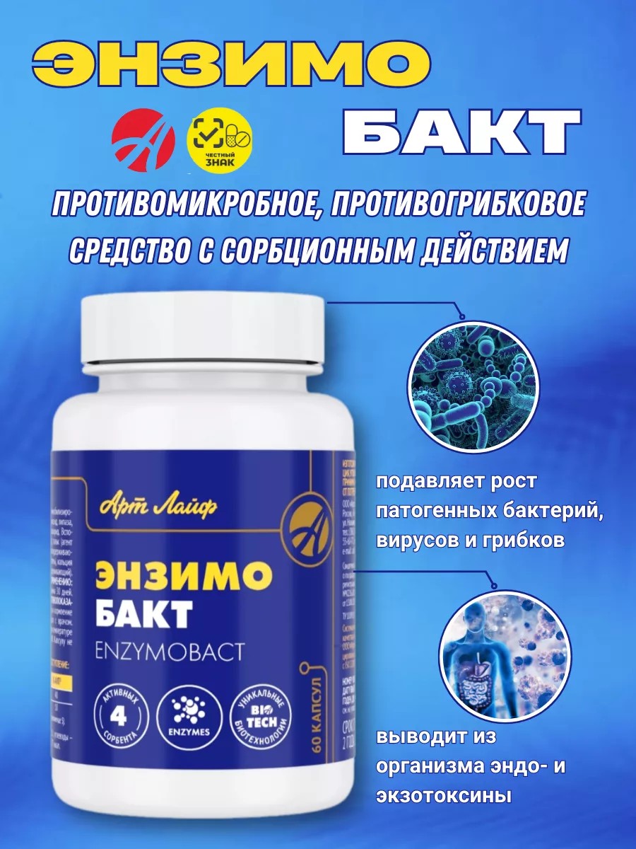Энзимобакт - метаболическая детоксикация при дисбактериозе и кандидозе от Артлайф.