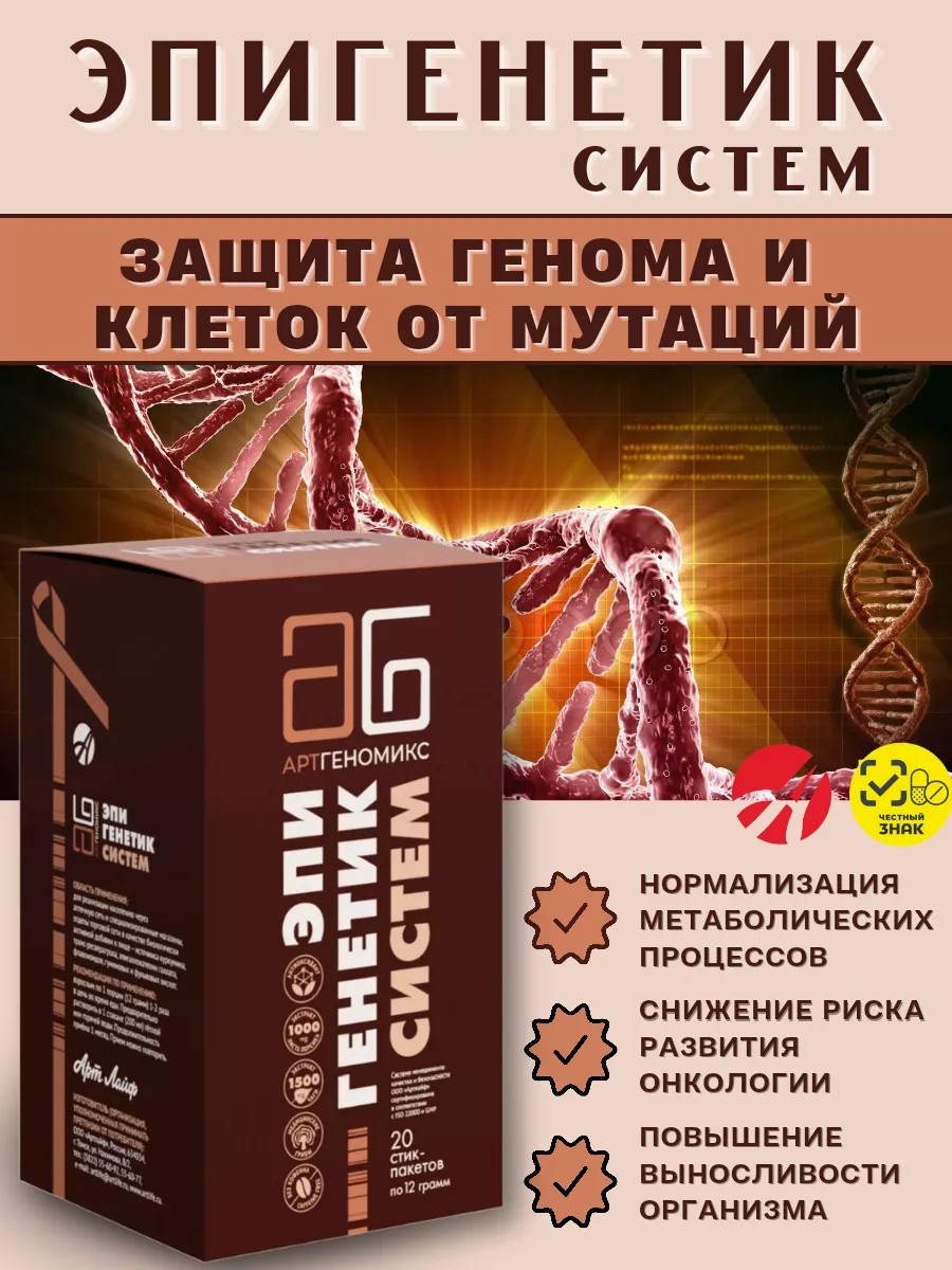 Биологически активный комплекс «Эпигенетик Систем» - это средство эпигенетической защиты наследственного материала нашего организма. Он способен обеспечить контроль за мутацией, безопасность генов и нормализовать метаболические процессы.