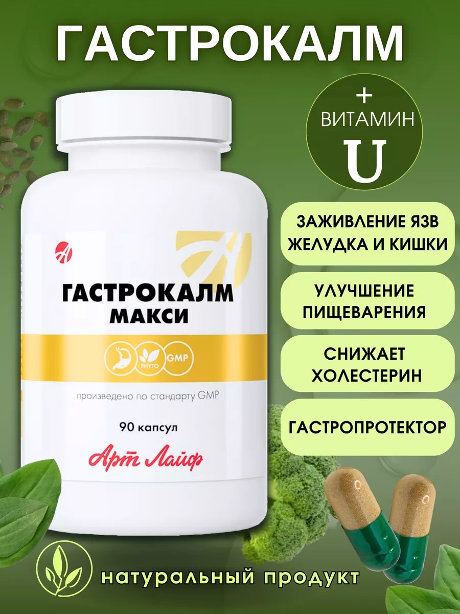 Gastrocalm Maxi helps fight Helicobacter pylori and promotes ulcer healing. Vitamins and multivitamins provide the body with essential micronutrients, which is especially important for adults. The product also supports detoxification and weight loss, improving metabolism and promoting weight loss.