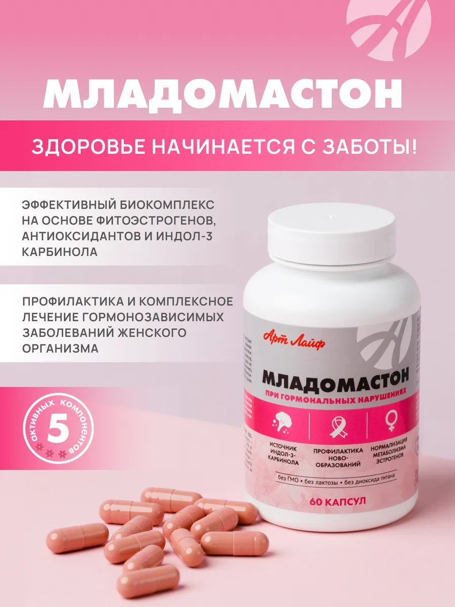 «Младомастон» помогает организму выводить канцерогены и нормализовать антиоксидантную защиту, способствует плавному восстановлению гормонального баланса. Концентрация компонентов подобрана для мягкого воздействия, без резких изменений.