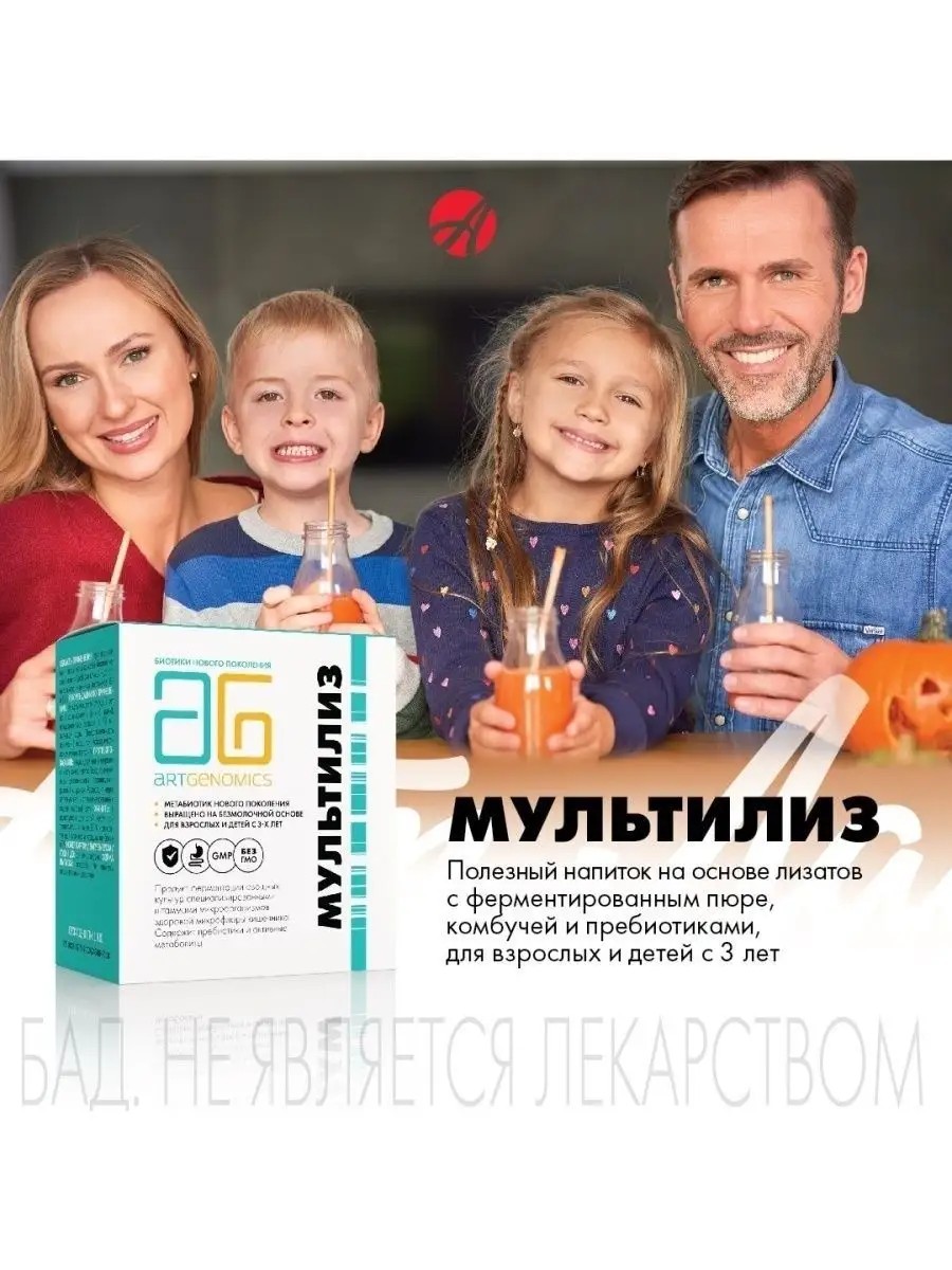 МультиЛиз - полезный напиток для детей с 3-х лет и взрослых, основанный на действии лизатов - мельчайших фрагментов клеточной стенки полезных лакто- и бифидобактерий. Попадая в кишечник, лизаты запускают синтез иммунных клеток, усиливая противовирусный и антибактериальный ответ организма. Такое свойство лизатов может быть использовано при сниженной сопротивляемости организма инфекциям, в профилактике сезонных респираторных заболеваний, в периоды адаптации детей к саду или школе. Кроме того, лизаты - источник веществ, необходимых для нормального пищеварения, которое является фундаментом крепкого здоровья и сильного иммунитета. Ферментированное пюре тыквы, лактулоза, ксантановая и гуаровая камедь стимулируют рост собственной микрофлоры кишечника, предупреждая дисбиозы и способствуя увеличению защитных сил организма. МультиЛиз - это двойная поддержка иммунитета и активное пищеварение!