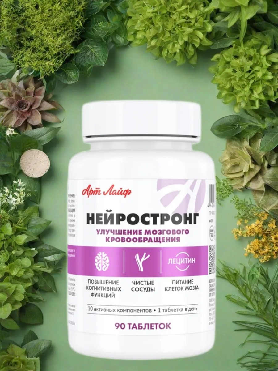 Нейростронг - это витаминно-травяной комплекс с лецитином для поддержания и укрепления центральной нервной и сердечно-сосудистой систем и рекомендуется для улучшения кровообращения преимущественно в сосудах головного мозга и сердца, а также для улучшения питания и оксигенации других органов и тканей, эффективен в комплексной терапии нарушений мозгового кровообращения. Комплекс способствует улучшению доставки к клеткам головного мозга кислорода, защищает их от повреждения недоокисленными продуктами обмена, уменьшает вязкость крови и вероятность тромбообразования. Эффективно повышает общую трудоспособность человека, улучшает память, способствует снятию головной боли, вызванной спазмами сосудов, предотвращает преждевременное старение.