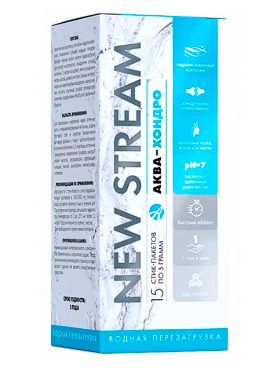 | Торговое наименование | биологически активная добавка к пище "NEW STREAM Аква- Хондро" (порошок в стик-пакетах/саше-пакеты (по 5,0 г) или во флаконах до 300 г с мерной ложкой 5,0 г) |
