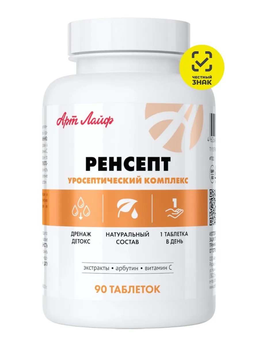 Ренсепт от Артлайф - растительный уросептический комплекс. Оказывает диуретическое, спазмолитическое, бактерицидное, детокс-действие. Мочегонный, противовоспалительный, антимикробный комплекс. Рекомендован для санации мочевыделительной системы. Рекомендуется для комплексной терапии хронических воспалительных заболеваний мочевыводящей системы, предотвращения их рецидивов и обострений. Листы брусники, толокнянка обыкновенная, петрушки, семена арбуза и кукурузных рылец оказывают мочегонное и антисептическое действие, выводят токсины. Корни одуванчика и солодки обладают противовоспалительным действие. Клюква богата полифенолами и танинами, которые играют важную роль в поддержании здоровья мочевыводящих путей. Оказывает антимикробное, регенерирующее, мочегонное действие. Плоды можжевельника оказывают дезинфекционное действие на мочевыводящие каналы. Витамин C укрепляет стенки капилляров, снижает проницаемость. Ионы калия необходимы для восстановления водно-солевого баланса в организме.