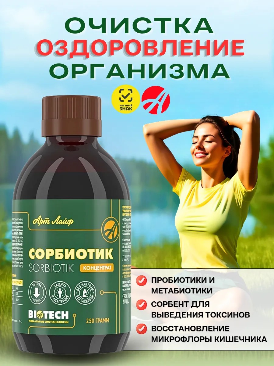 Сорбиотик от Артлайф - борьба с токсинами и восстановление микроэкологии кишечника. Уникальный инновационный сорбент на основе фульвовых кислот, пребиотиков и метабиотиков нового поколения. Обладает выраженным детоксикационным эффектом, улучшает функциональную активность желудочно-кишечного тракта, помогает поддерживать баланс и видовое разнообразие полезных пробиотических бактерий.