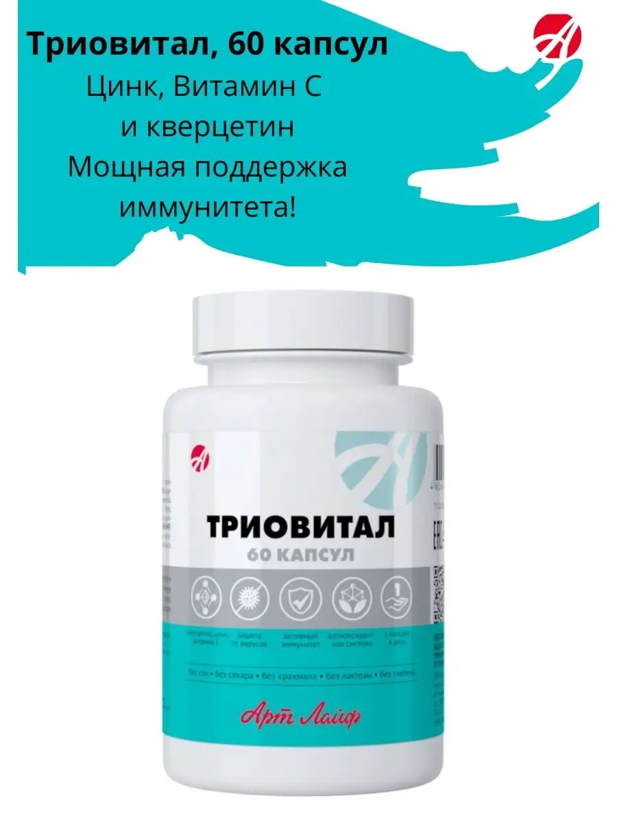 Цинк способствуют укреплению соединительной ткани, улучшают состояние кожи, волос и ногтей. Витамин С помогает поддерживать здоровье суставов и сосудов, что особенно важно для женщин и мужчин, ведущих активный образ жизни. Триовитал комплекс противовирусный рекомендуется для женщин и мужчин. Применение Триовитала просто - достаточно принимать по 1 капсуле в день во время еды. Это удобно и экономично. Комплекс Триовитал 60 капсул - для профилактики, снижения вирусной нагрузки и укрепления иммунитета в период эпидемий коронавирусной инфекции, гриппа, ОРВИ, а также сезонных заболеваний. Триовитал создан с учётом рекомендаций международных протоколов профилактики и лечения коронавирусной инфекции COVID-19. Сочетает в себе несколько активных компонентов - кверцетин, цинк и витамин С, которые усиливая действия друг друга, обеспечивают высокую эффективность препарата. Рекомендуется как на ранних стадиях заболевания - активно действует в инкубационный период, так и при затяжном течении болезни. Показания к применению: профилактика и в составе комплексной терапии коронавирусных инфекций, гриппа и ОРВИ; в составе комплексной терапии инфекционных и хронических заболеваний дыхательных путей; лицам, находящимся в группе риска по наличию хронических заболеваний и по возрасту – старше 60 лет;