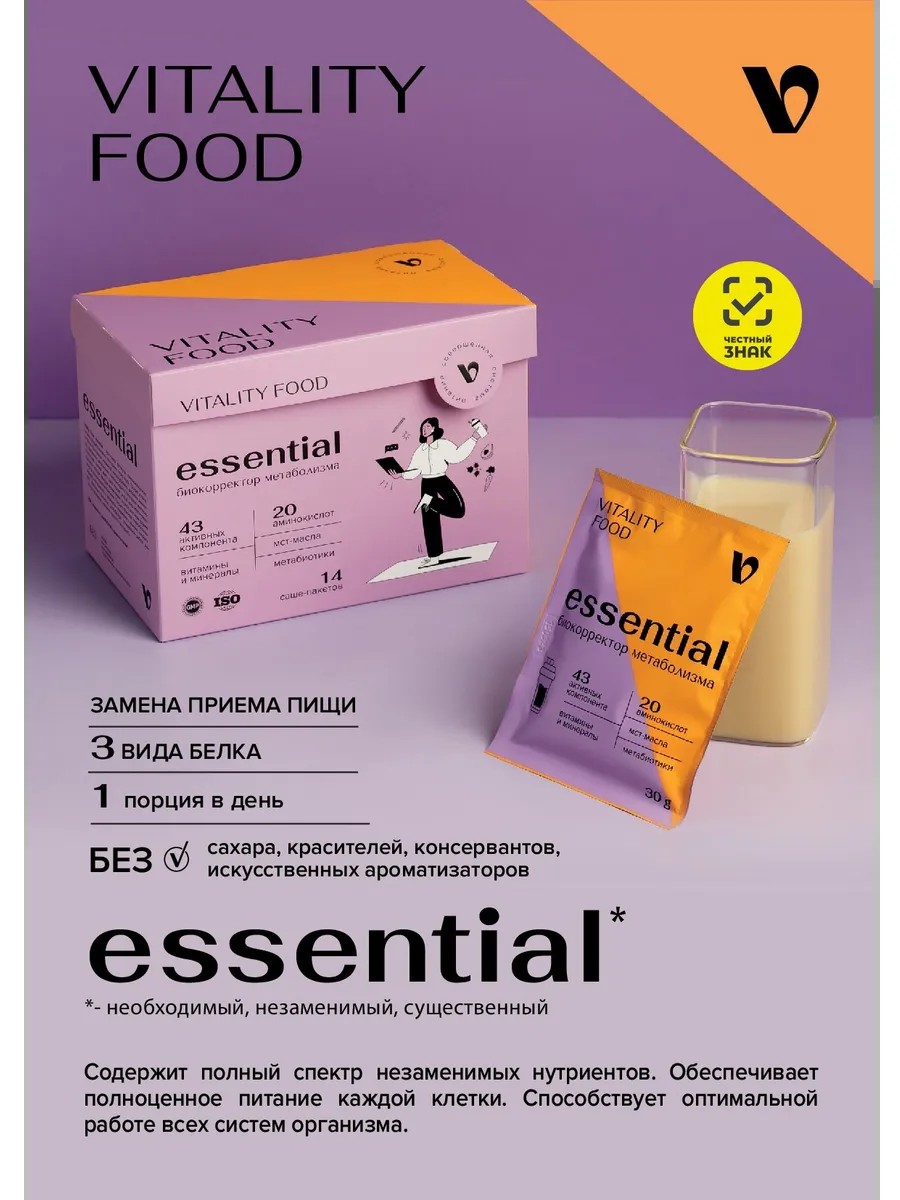 Виталити Фуд эссеншл от Арт Лайф – идеальная формула сбалансированного питания, разработанная по последнему слову науки. Продукт включает более 40 активных элементов: макронутриенты, витамины, минералы, пребиотики, метабиотики и антиоксиданты. Благодаря многокомпонентному составу всего 1 порция БАД в день обеспечивает организм полным набором незаменимых веществ, высоким уровнем энергии и отличным настроением.