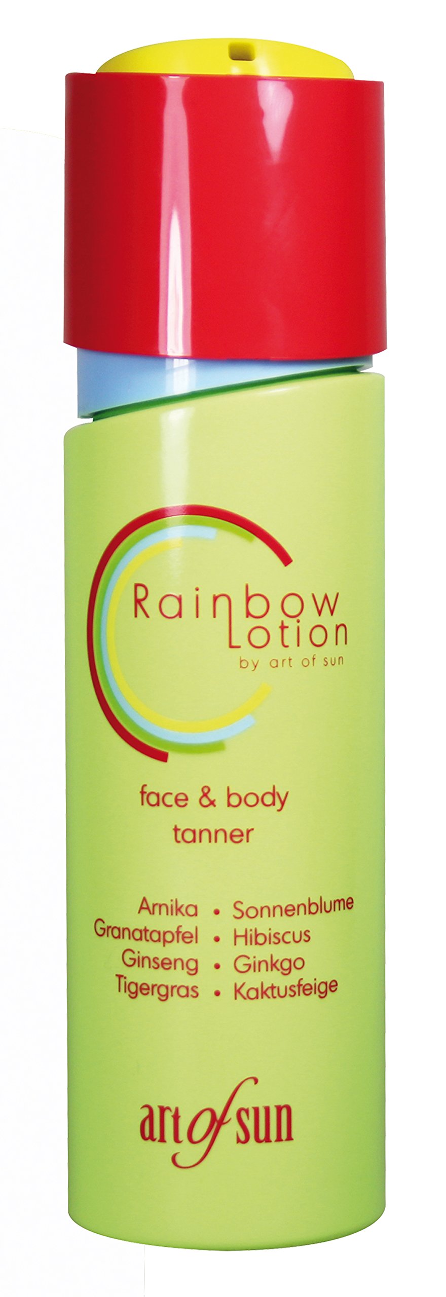 Art of Sun Rainbow skin care notion for body and face.Eight extraordinary ingredients combine in a nourishing tanning lotion for face body.Rainbow lotion contains high -quality ingredients such as Arnica, pomegranate, ginseng, tiger grass, sunflower, hibiscus, ginkgo and cactus fig.These individual ingredients have the following characteristics.Harmonizing relaxing: The ginseng root extract strengthens the skin against stress -related infections and can have a harmonizing effect.The ginsenosides contained are considered bioenhancers (amplifiers) for other active ingredients.The cactus pen extract can relax the skin by increg the skin moisture and which rich in antioxidants intercept the free radicals.Streaming renewing: The Centella Asiatica extract, also known as Tiger Grass, is used to lift contours and refine the complexion.With its aha fruit acids, the hibiscus flowers supports skin renewal for a vital, youthful fresh skin.Vitalizing stimulating: The GraneafFruch extract has a very high content of antioxidants, prevents premature aging and receives the vitality of the cells.The Ginkgo Biloba extract promotes blood circulation, prevents premature skin aging and protects the skin from free radicals with its flavonoids.Soothing nourishing: the sunflower oil, maintains and ensures a velvety feeling on the skin.The Arnica extract strengthens the antimicrobial defenses of the skin and counteracts the development of skin inflammation.Browning intensification: melano bronze to support the skin's own melanin production, and for a long -lasting, deep tan.Acetyl etyrosine to stimulate the skin's own browning process.Fragrance composition: fruity, fresh.Application: Apply for the body and face before tanning.Does not contain a self -tanner.Contents: 200 ml.for long -lasting and more intensive tanning results.Art of Sun RAINBOW Hautpflegelotion für Körper und Gesicht. Acht außergewöhnliche Inhaltsstoffe vereint in einer pflegenden Tanning Lotion für Face Body. Rainbow Lotion enthält hochwertige Inhaltsstoffe wie Arnika, Granatapfel, Ginseng, Tigergras, Sonnenblume, Hibiscus, Ginkgo sowie Kaktusfeige. Diese einzelnen Inhaltsstoffe weisen folgende Charaktereigenschaften auf. HARMONISIEREND ENTSPANNEND: Das Ginsengwurzel Extrakt stärkt die Haut gegen stressbedingte Infektionen und kann harmonisierend wirken. Die enthaltenen Ginsenoside gelten als Bioenhancer (Verstärker) für andere Wirkstoffe. Das Kaktusfeigen Extrakt kann die Haut entspannen, indem er die Hautfeuchtigkeit erhöht und welcher reich an Antioxidantien die freie Radikale abfangen. STRAFFEND ERNEUERND: Das Centella Asiatica Extrakt, auch unter dem Namen Tigergras bekannt, dient zur Konturenstraffung und zur Verfeinerung des Hautbildes. Das Hibiskusblüten Extrakt unterstützt mit seinen AHA Fruchtsäuren die Hauterneuerung für eine vitale, jugendliche frische Haut. VITALISIEREND ANREGEND: Das Granatapfelfrucht Extrakt hat einen sehr hohen Gehalt an Antioxidanten, beugt so der vorzeitigen Alterung vor und erhält die Vitalität der Zellen. Das Ginkgo Biloba Extrakt fördert die Durchblutung, beugt vorzeitiger Hautalterung vor und schützt die Haut durch seine Flavonoide vor freien Radikalen. BERUHIGEND PFLEGEND: Das Sonnenblumenöl, pflegt und sorgt für ein samtweiches Gefühl auf der Haut. Der Arnika Extrakt stärkt die antimikrobiellen Abwehrkräfte der Haut und wirkt der Entstehung Hautentzündungen hautberuhigend entgegen. BRÄUNUNGSINTENSIVIERUNG: Melanobronze zur Unterstützung der hauteigenen Melanin Produktion, und für eine lang anhaltende, tiefe Bräune. Acetyltyrosin zur Anregung des hauteigenen Bräunungsprozesses. Duftkomposition: Fruchtig, frisch. Anwendung: Für Körper und Gesicht, vor der Besonnung auftragen. Enthält keinen Selbstbräuner. Inhalt: 200 ml.Für länger anhaltende und intensivere Bräunungsergebnisse.Art of Sun Rainbow Lotion Face Body Tanner 200 ml