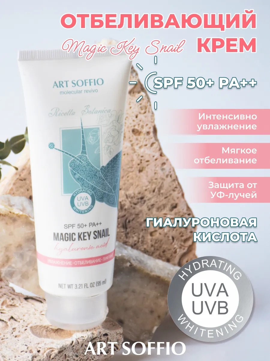 КРЕМ ДЛЯ ЛИЦА ART SOFFIO MAGIC KEY SNAIL С SPF50+ ИНТЕНСИВНО УВЛАЖНЯЮЩИЙ И ОТБЕЛИВАЮЩИЙ.