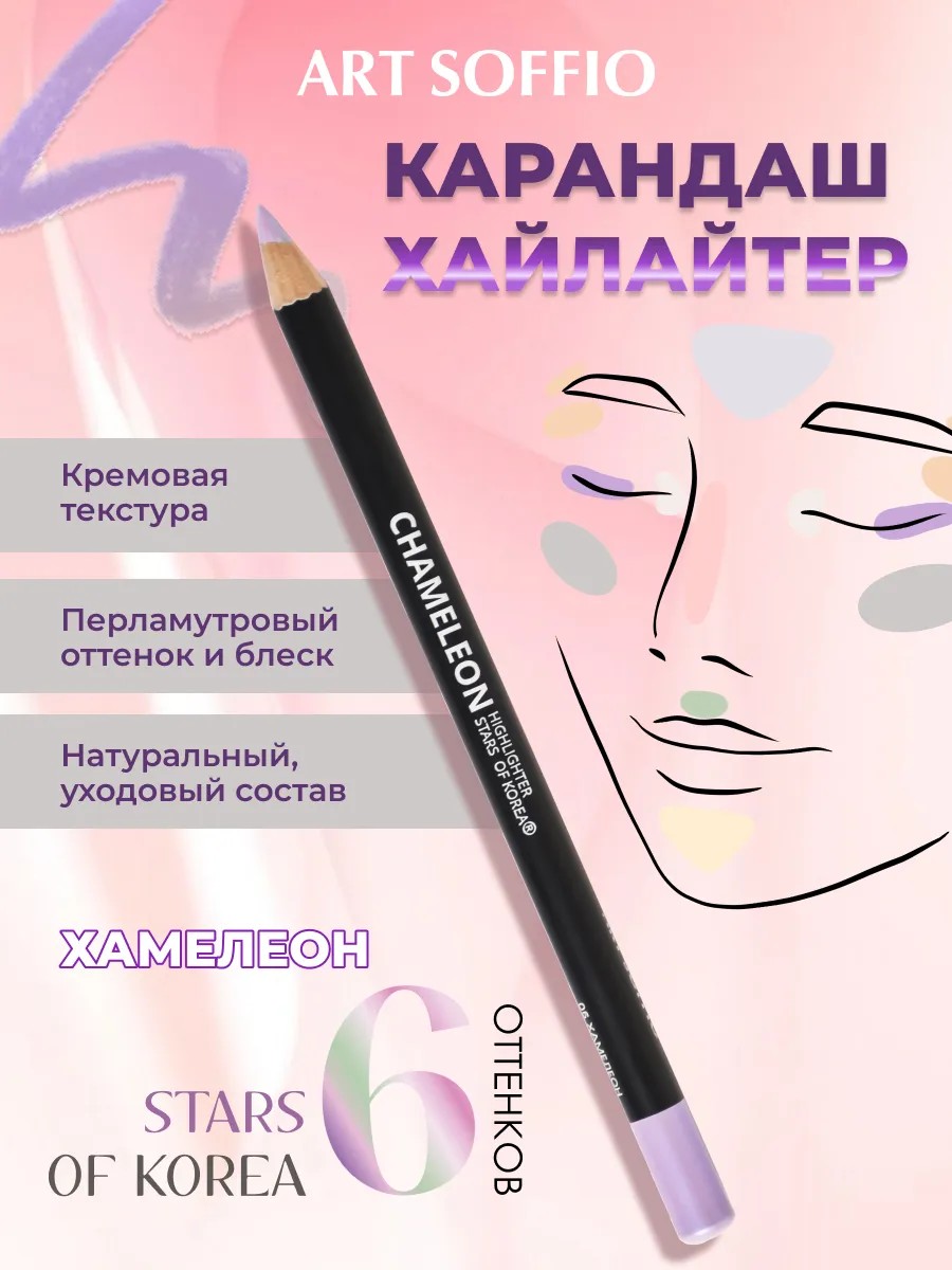 Art SoffioStars of Korea карандаш-хайлайтер –это перламутровая магия для создания нежного жемчужного перелива в макияже