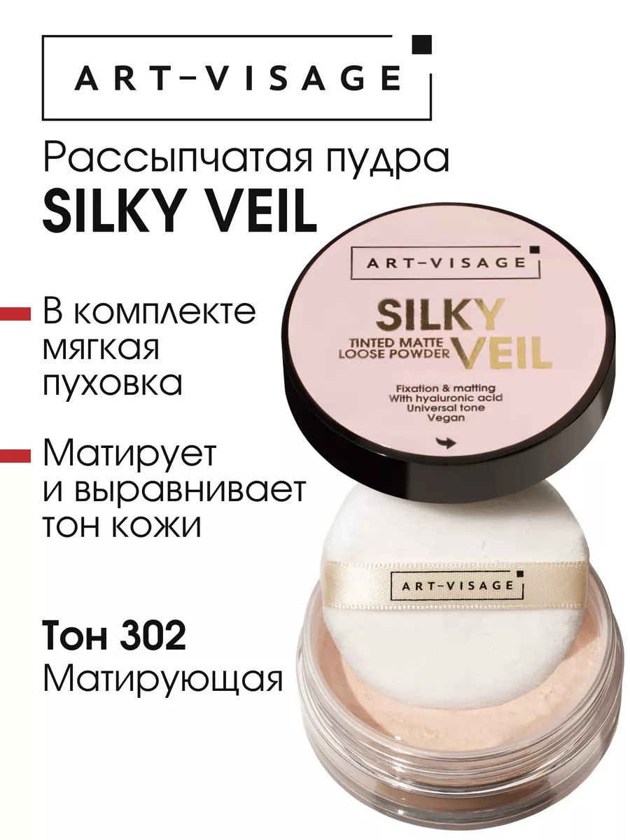 Рассыпчатая пудра SILKY VEIL - финальный штрих в вашем макияже! Невидимая волшебная вуаль для кожи, которая дарит безупречную матовость и надолго закрепляет макияж.Текстура с мощным soft-focus-эффектом визуально преображает кожу, делая ее гладкой и совершенной.Дышащая, гипоаллергенная формула подходит для всех типов кожи, не содержит парабены и не забивает поры.
