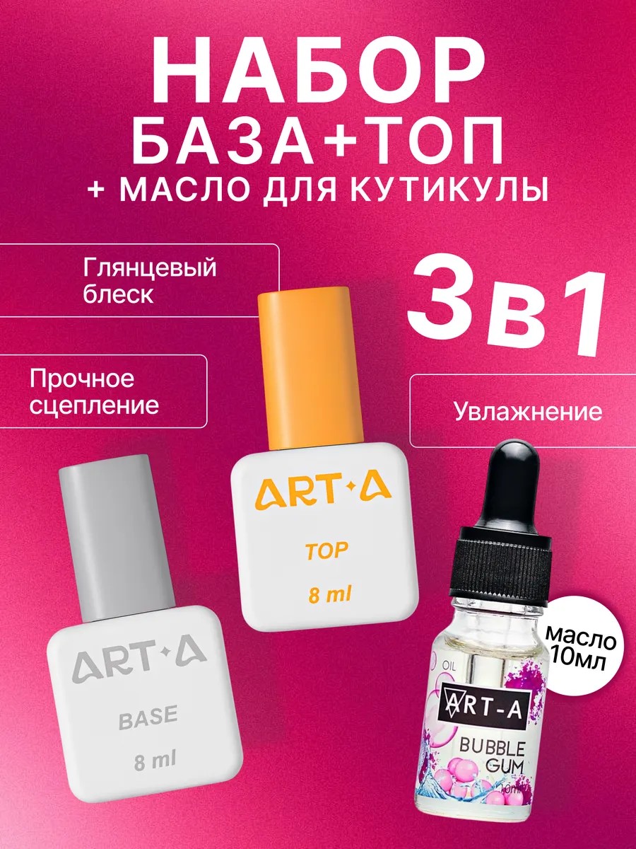 Набор 3в1 база и топ для ногтей от Art-A и масло для ногтей — ваш идеальный выбор.