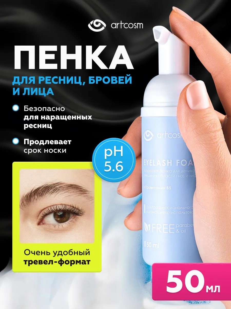 Пенка для очищения ресниц и лица Artcosm 50 мл - трэвел формат, умывалка для лица, а также хорошо подходит ка пенка для наращивания ресниц.