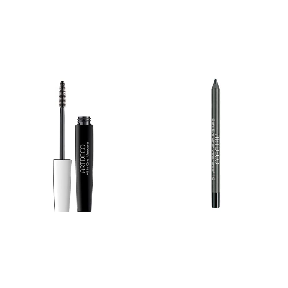 Artdeco 1180-02012 All in One Mascara 01 Black 10 ml Artdeco 1180-21105 Waterproof Eyeliner Pencil 10 Black 1.2 g The new soft eyeliner texture is exceptionally long-lasting. After drying, the line becomes waterproof. The pleasantly soft and creamy texture allows for very easy and precise application. The line can be easily smudged shortly after application and is characterized by the exceptional brilliance of its colors and its high opacity. Contains natural antioxidants and vitamin E. Fragrance-free. Apply along the lash line from the inner corner of the eye to the outer corner. Close the pencil tightly after use to keep the tip soft and supple. To sharpen it, we recommend the Artdeco pencil sharpener. Tip: for a precise eye contour, do not apply the eyeliner in one stroke, but stroke by stroke, from the inside out.Product 2: The pleasantly soft and creamy texture allows for very easy and precise application. Product 2: After drying, the line becomes waterproof. Product 2: The new soft eyeliner texture is exceptionally long-lasting. Product 1: Artdeco brand. Product 1: Mascaras. Product 1: Beauty products.Artdeco 1180-02012 All in One Mascara 01 Black 10 ml All In One Mascara 01-Black 10 Ml Artdeco 1180-21105 Crayon Contour Yeux Résistant à l'Eau 10 Black 1,2 g La nouvelle texture du soft eye liner est exceptionnellement longue tenue. Après le séchage, le trait devient imperméable. La texture agréablement douce et crémeuse permet une application très facile et précise. Le trait peut facilement être estompé peu après l'application et se caractérise par la brillance exceptionnelle de ses couleurs et sa grande opacité. Contient des antioxydants naturels et de la vitamine E. Sans parfum. Appliquer le long des cils du coin interne de l'œil vers le coin externe. Bien refermer le crayon après utilisation afin que sa mine reste souple et douce. Pour le tailler, nous vous recommandons le taille crayon Artdeco. Astuce: pour un contour des yeux précis, ne pas appliquer l'Eye-Liner en un seul trait, mais trait par trait, de l'intérieur vers l'extérieur.produit 2: La texture agréablement douce et crémeuse permet une application très facile et précise. produit 2: Après le séchage, le trait devient imperméable. produit 2: La nouvelle texture du soft eye liner est exceptionnellement longue tenue. produit 1: Marque Artdeco. produit 1: Mascaras. produit 1: Produits de beauté.Artdeco 1180-02012 All in One Mascara 01 Black 10 ml 1180-21105 Crayon Contour Yeux Résistant à l'Eau 10 Black 1,2 g